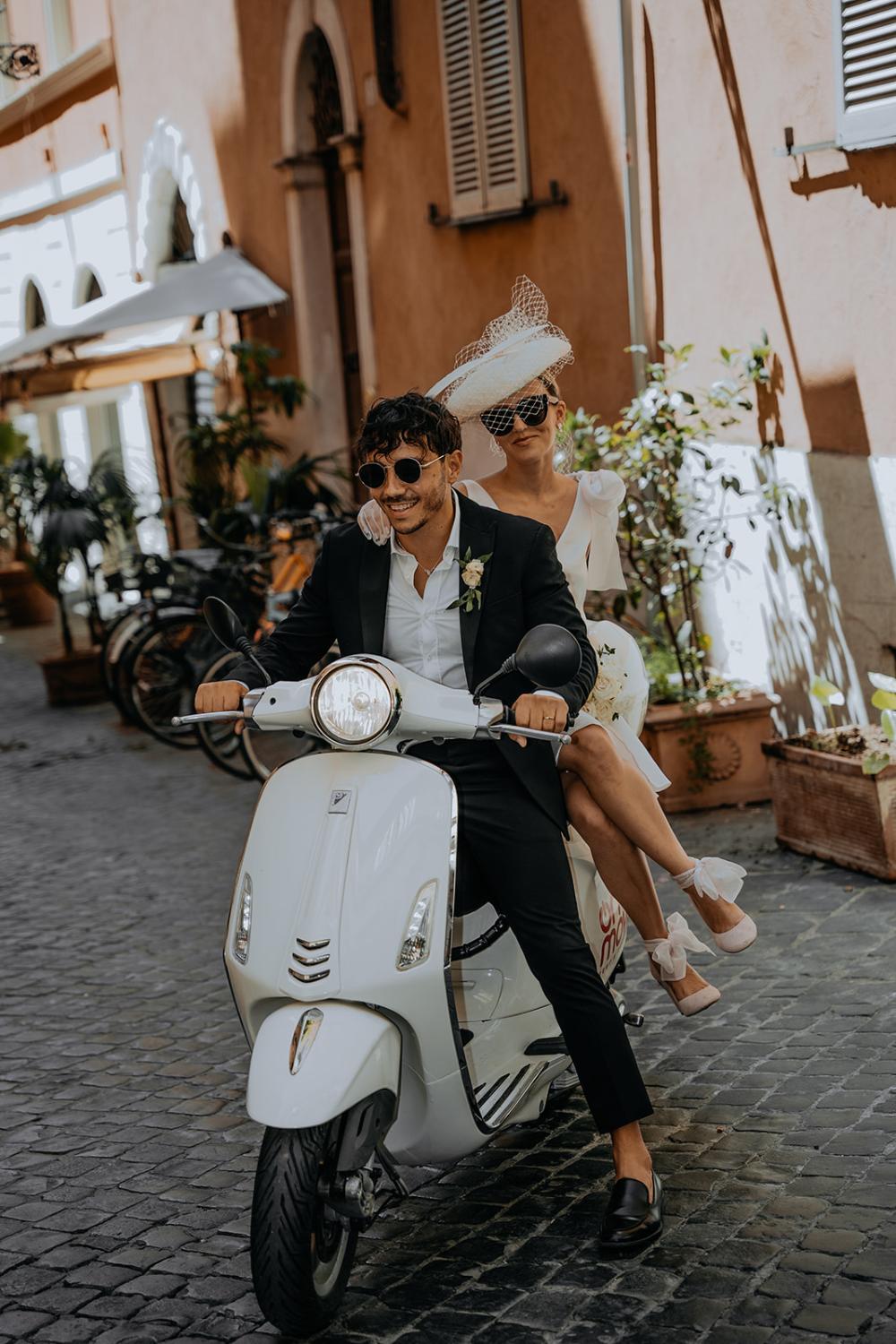 A Chic Rome Elopement With A Short Wedding Dress And Vespa
