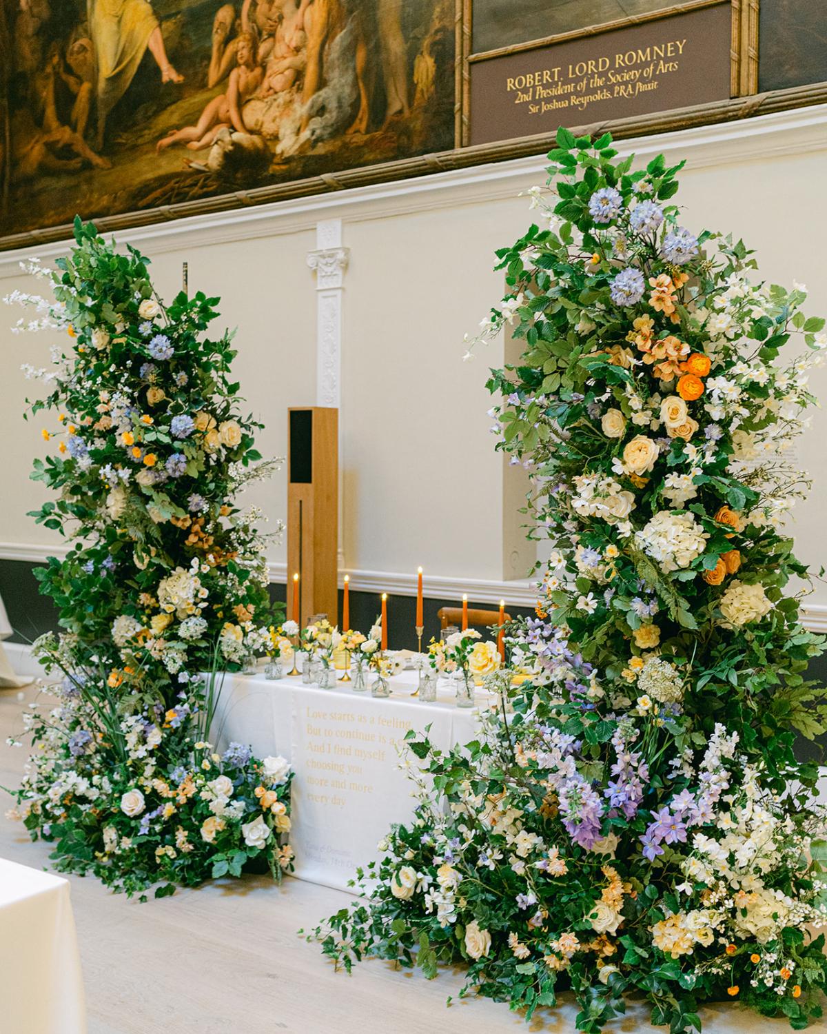 “When styling a bold cultural wedding in a historic venue, focus on blending cultural heritage with the venue’s charm to create a harmonious and meaningful celebration. Incorporate traditional elements—such as attire, decor, or colours—while complementing the venue’s architecture and history. Balance bold cultural details with modern touches, like sustainable florals or contemporary table settings, to merge tradition and innovation seamlessly working with creative professionals who share your vision, couples can create a wedding that honours their values, celebrates cultural inspiration, and stands out as bold and unforgettable. Couples can turn this theme into reality by blending historical inspiration with modern, sustainable design. Start by selecting a venue with a rich history and ethical values, such as RSA House, to set the stage for a celebration rooted in inclusivity and sustainability. Incorporate silk floral arrangements for an eco-friendly, reusable alternative to fresh flowers, and choose a bold palette—such as golden yellows paired with soft lavender and greenery—that complements the space while making a statement.”