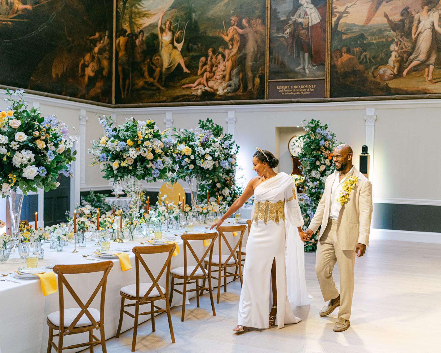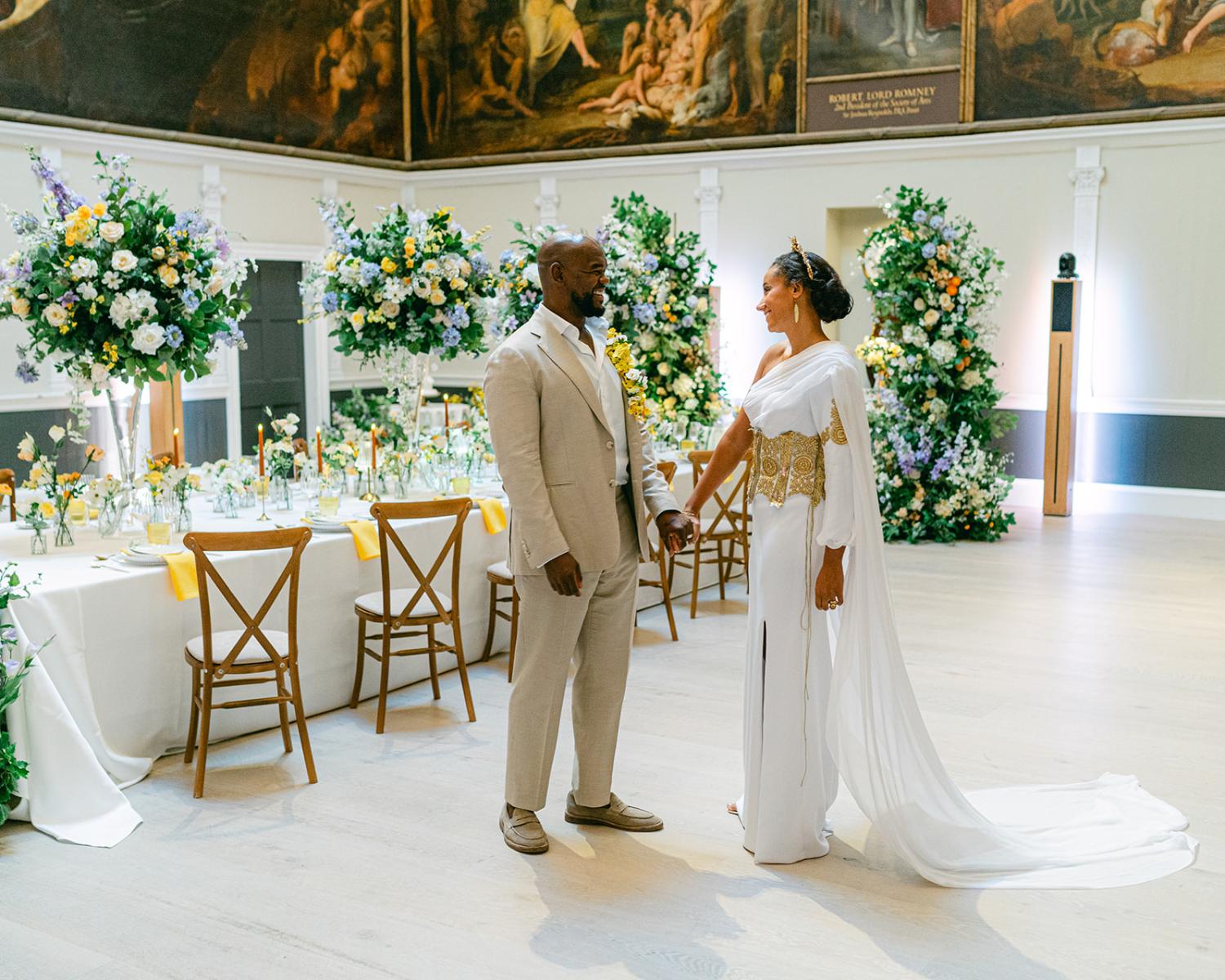 This wedding is a perfect celebration of sustainable luxury, showcasing how bold, vibrant themes can be effortlessly chic. Set in the heart of London at the Royal Society of Arts, and aptly titled ‘Golden Dynasty’ this celebration highlights the couple’s love story and the venue’s incredible commitment to sustainability, inclusivity, and diversity. It’s the perfect backdrop for couples looking to create a day that’s both stylish and responsible. Love yellow and want your wedding to be luxe and eco? This inspiration is all you’ll need to plan your own unforgettable celebration. We catch up with stylist With Akilah & Co and the rest of the creative team to find out all about it…