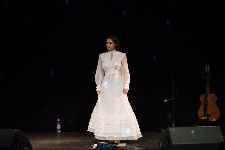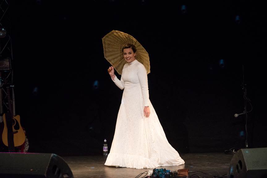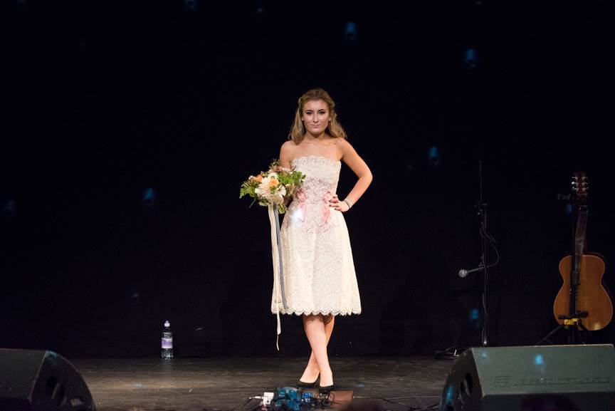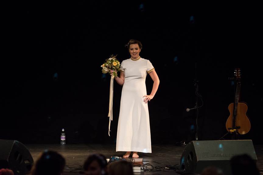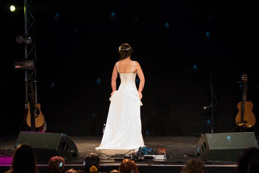 Earlier this autumn we returned to Bath after a few years break. As always we had a fashion parade, featuring vintage and vintage inspired dresses from our exhibitors. Here is just a quick blog post to share some of these dresses on stage and then worn beautifully within the city centre. The dresses were by Days Of Grace, Alexandra King and from us here at the National Vintage Wedding Fair