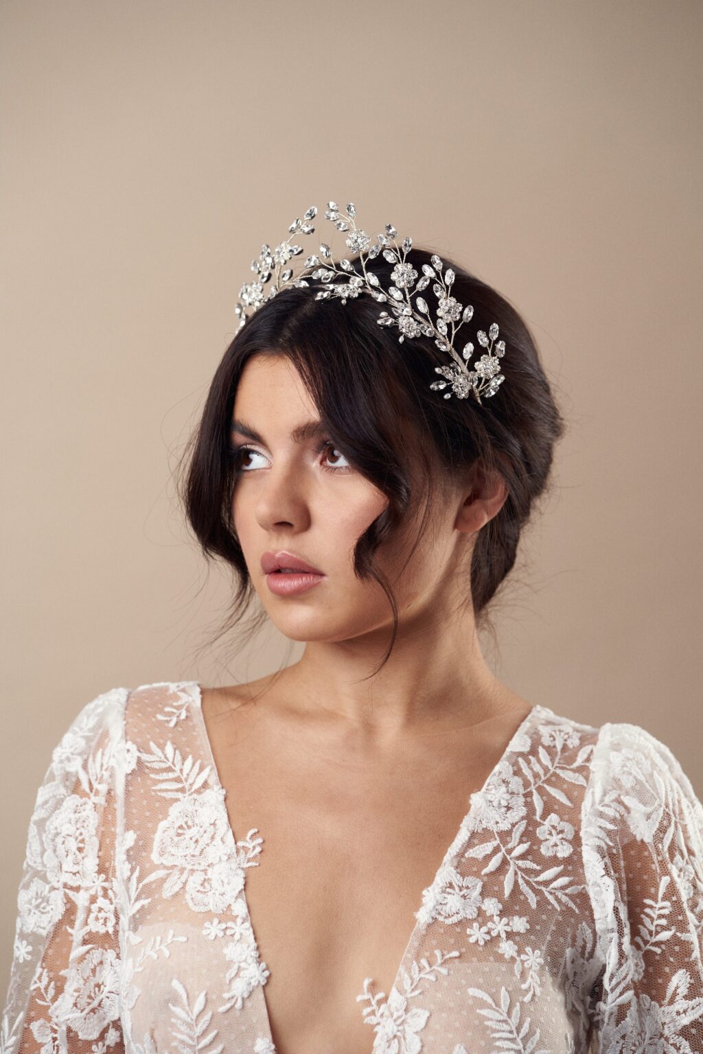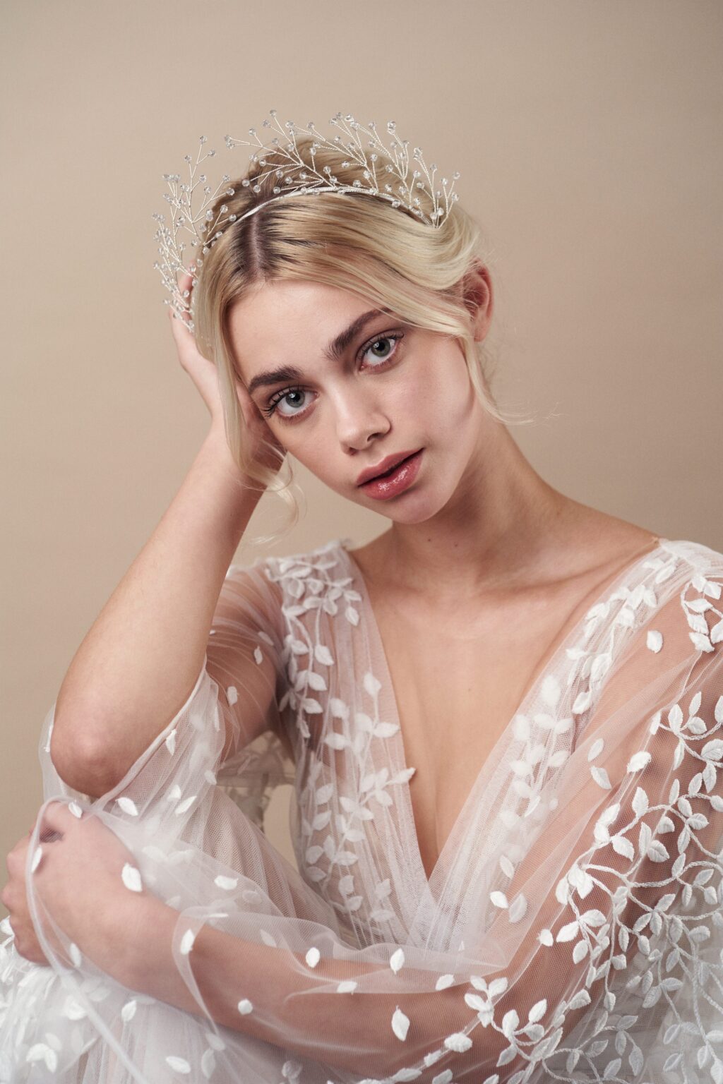 The Princess of Wales surprised everyone at the King’s Coronation by wearing a newly designed and epic tiara. It was a three-dimensional leaf embroidery headpiece and was a collaboration between milliner Jess Collett and Alexander McQueen. Her daughter, Princess Charlotte wore a mini version that we reckon will inspire flower girls and brides for the year ahead. With that in mind here are a few independently designed bridal headpieces that are a nod to this look – plus all can be made in mini-me versions.