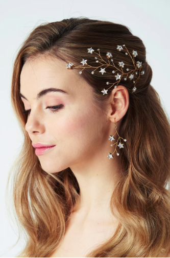 Simply add a hair vine across the head for bridesmaids and flower girls.