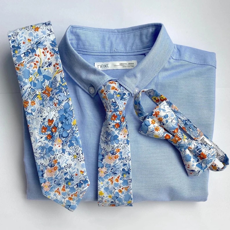 Forget the classic navy suit, spring calls for something a bit lighter! We love this pastel blue three-piece for a chic and contemporary look. If you’d prefer to keep a darker suit brighten it up with a pastel blue shirt and a beautiful spring floral tie set! Perfect for grooms wanting to make a statement on their wedding day.