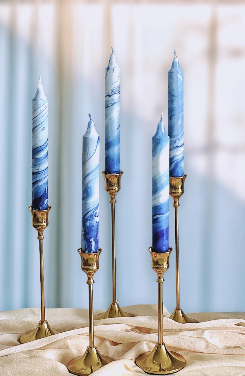 From beautiful marbled candles to vintage-style vases you can really get creative with using blue in the styling of your wedding. Dark blues, pastel blues and light blues, anything goes. Mix it with other pastel shades for a contemporary look or keep it true blue for a beautiful cohesive look throughout your whole day!
