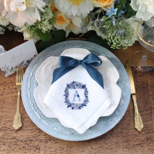 Wow your guests with their dining experience with these stunning personalised napkins and bows. You can mix up the blue colours with ease and create a sea of beautiful blue hues across your tables. The details are always what people remember and these would make great favours too!