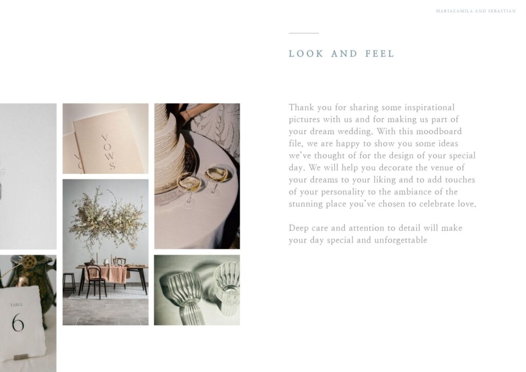 “To create your perfect wedding we use nothing but visuals. We develop mood boards and a recap of the design of the wedding, based on your ideas and thoughts and the inspirational photos you will have shared with us. We will work together with you for the styling of the event and we will give you suggestions and expert knowledge on the wedding palettes.”