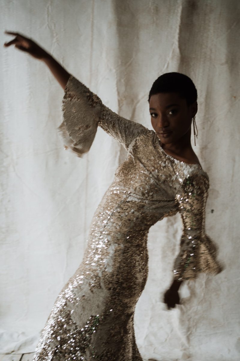 Sparkle in sequins with this beauty by Julita London It’s the perfect match for a festive black tie wedding or as a second dress for a key change for your evening reception. Perfect for dancing in and will most definitely bring the fun vibes to your big day! Julita is a British independent wedding dress atelier offering intuitive creations. Made from premium fabrics, all gowns are designed and meticulously hand-crafted to order, one dress at a time in London, by a small team of female artisans.