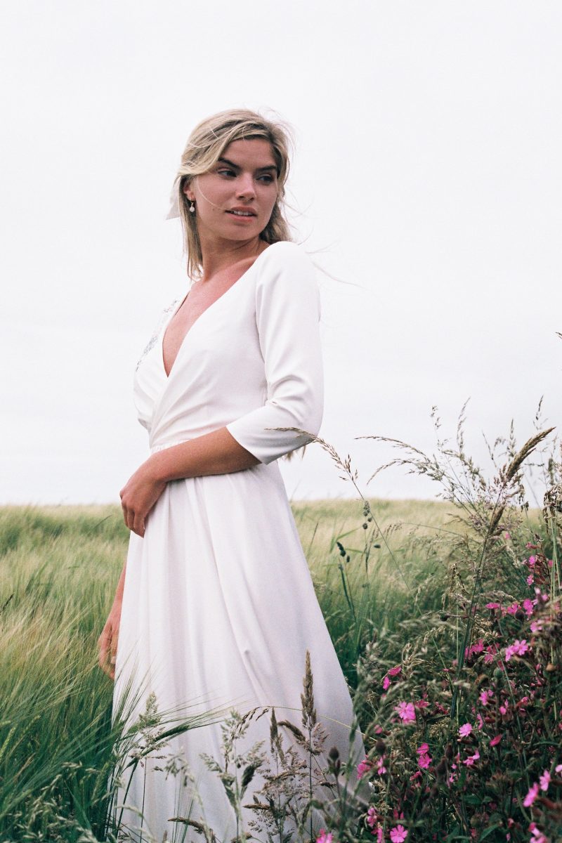 Lots of modern vintage vibe love for this beautiful number by Eliza May Atelier. With a structured bodice and skirt, this design will hold its own as you walk down the aisle. The gathered shoulders and delicate sleeves will keep out the winter chill too! This designer is perfect if you want to layer your bridal look. Each piece is designed to be worn with multiple other pieces in the collection and to be worn again after the wedding day too! They also carefully research the fabrics and materials we use to ensure that we are using the most luxurious and sustainable fabrics on offer.