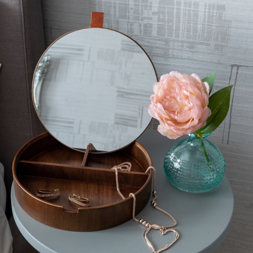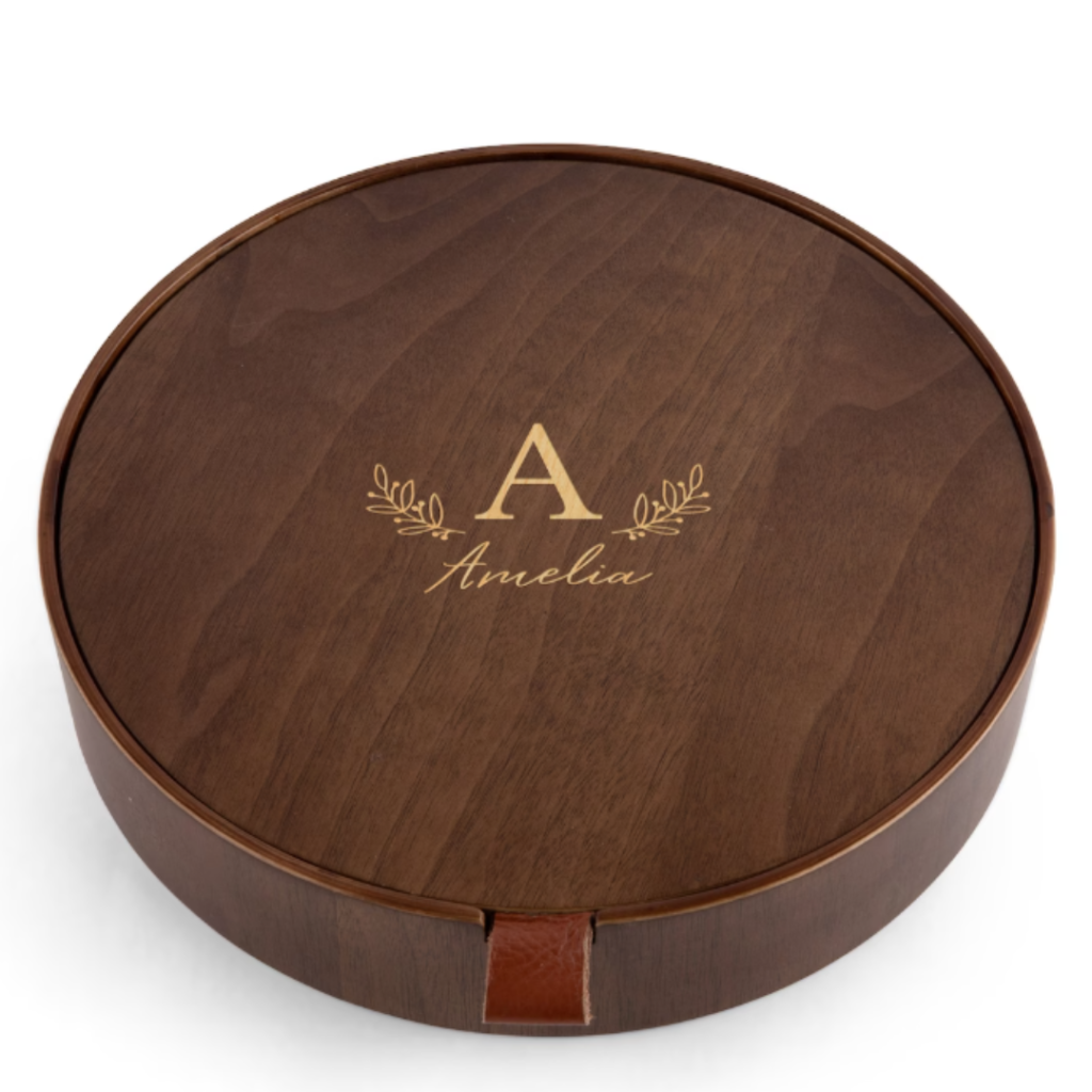This wooden jewellery box is a beautiful gift for your mum’s jewellery. It keeps everything safely organised and it will be a beautiful addition to your mum’s home! Featuring a mirror, a real leather loop to open the lid and three compartments it’s the perfect gift. It comes engraved with the initial and name of your choice in the centre of the lid to make a unique and personalised gift that she’ll treasure forever!