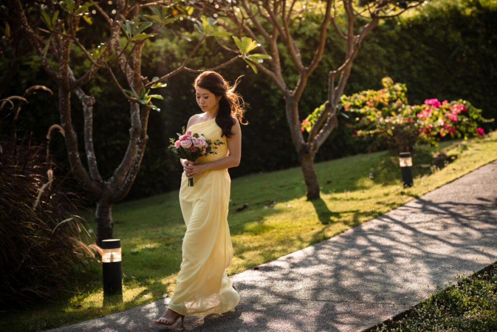 With an original date in 2020 they had a long wait between engagement to marriage “22nd February 2020 was an auspicious date in Chinese culture with many 2s, however, due to COVID, our wedding party was postponed to 25 March 2023. They chose the beautiful country of Thailand to tie the knot “We would highly recommend Samujana, to those who would enjoy a luxury villa experience, we chose a garden chic theme to match the ambiance for the welcome and recovery events, then for the wedding, we wanted a more traditional and elegant vibe with a formal wedding dinner. Our colour scheme matched perfectly and created the look we envisaged”
