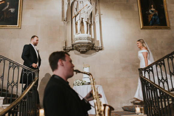 “It’s extremely difficult to choose a favourite moment as everything seemed to run so perfectly and all the suppliers were simply incredible. From the moment we were in the horse and carriage, to the magician and saxophonist entertaining us during the drinks reception. The surprise singing waiter getting the entire room to do the conga and dancing the night away with all our loved ones. However, if we had to choose then our favourite moment of the day was entering the evening reception via the grand staircase to The Deloreons saxophonist, very dramatic! Charlie Smith then sang the huge song ‘Never Enough’ and blew everyone away.”
