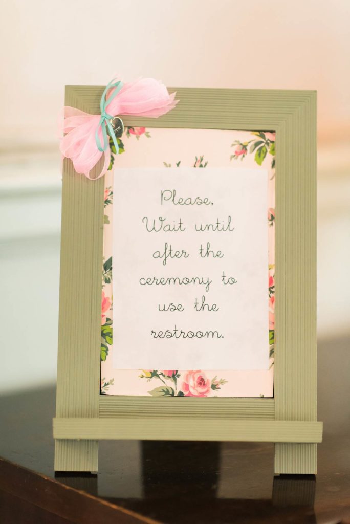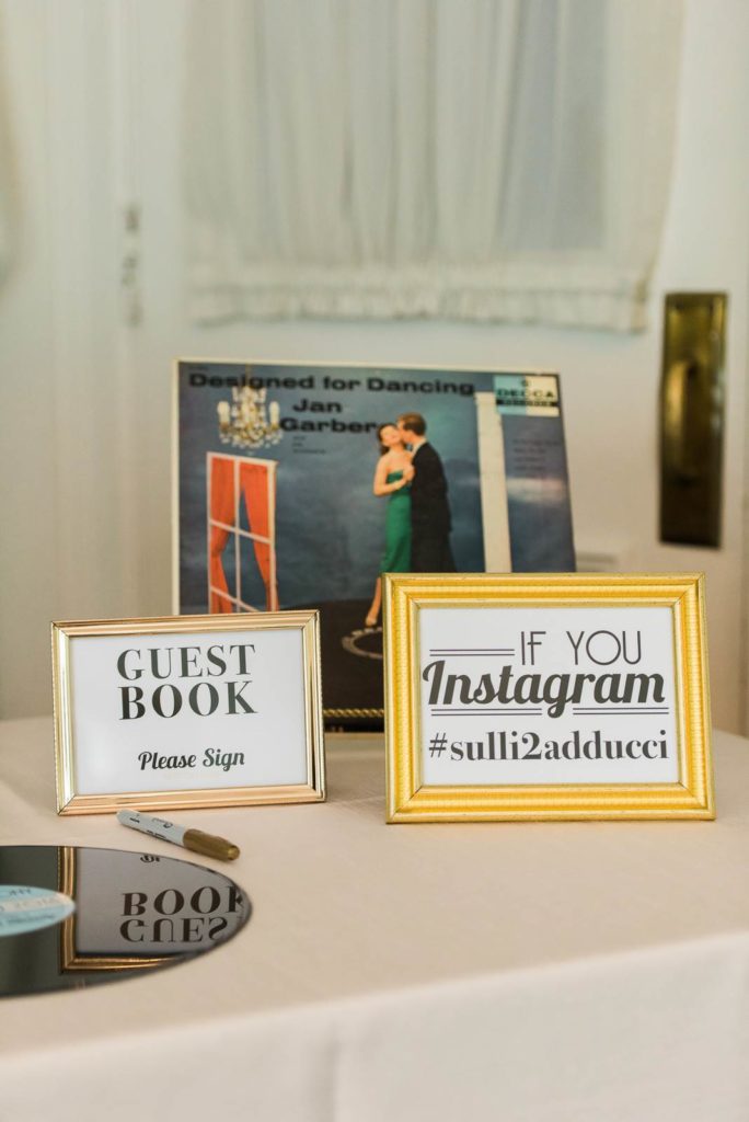 The pastel wedding details are what I love about this wedding. They used turquoise, mint, baby pink and navy blue with accents of gold in their colour pallet. One of their favourite retro details was using vinyl records as the guest book with a customized label of the first dance, echoing Tony’s cuff links.
