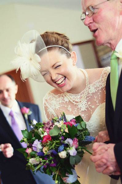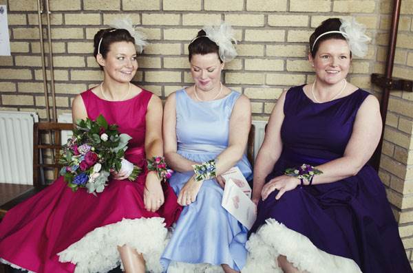 My bridesmaids were my three sisters, Clare, Oonagh and Adele; they were pretty much like me in terms of getting organised. I absolutely didn’t mind what they wore so long as they felt comfortable. We eventually found a dress they’d all like to wear online but when all three arrived in a packet that was small enough to be posted through my letterbox, we were sceptical to say the least. Adele had the answer though and swiftly went about ordering three fabulous ivory underskirts which created the perfect look. A ribbon around the waist and a fascinator for everyone, perfect.