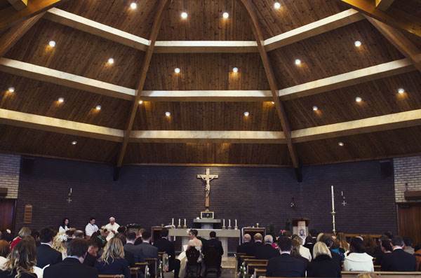 We weren’t too fussed on all of the wedding traditions but being Catholic, we wanted a mass to celebrate our marriage and then, a big party with good music, good food and all our friends and family. We were married in my family parish church, St Ambrose Barlow which is not always heralded as being very aesthetically pleasing but, it is where I’ve grown up and the community we’re part of so it was important. Amy, our photographer, managed to get some great snaps inside and made it look quite beautiful.