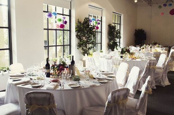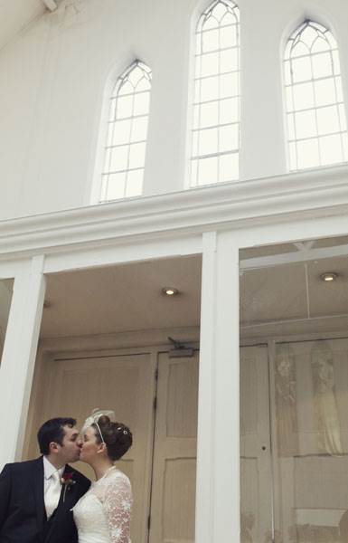 We chose our venue, Fazeley Studios after going through a number of different ideas from fields to church halls. Eventually, we thought about how we love living in Birmingham and how we wanted everyone to be able to get to and from the venue with ease and little expense so started looking close to home. We love the (former Birds) Custard Factory venue but we discovered that it was too small for our party and looked at Fazeley, the converted 1870’s chapel now part of it. It was perfect – it really is a hidden gem. Situated in the middle of Digbeth, which is close to our hearts as the central hub of the Irish community but also as the ever growing music, art and fashion centre of Birmingham. It was perfect for us; a beautiful, light and airy reception room with fantastic period features and exquisite furniture for all of our guests to lounge on and sip their flutes of fizz, plus a gorgeous court yard for our late night BBQ and the rebels to smoke in, a marble floor in the indoor garden which provided the perfect dance floor for the ravers and a bar that delivered a great atmosphere and ample seating for both the hard-core drinkers and the sit and chat types alike.