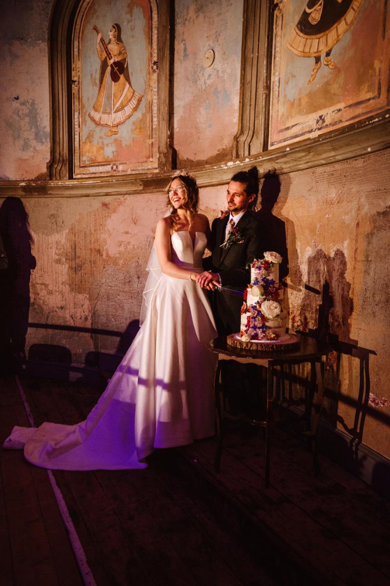 “Our cake was made by a fully vegan bakery and incorporated our flower choices. We opted for dark and dramatic flowers like deep red calla lilies, with pops of colours such as light pink roses and sunflowers. We had a dedicated games room for all our guests to enjoy during the reception as well as a fully stocked completely vegan sweets room! As our guests entered the lobby of Wilton’s Music Hall, we had vegan leaflets and kits for anyone interested.”