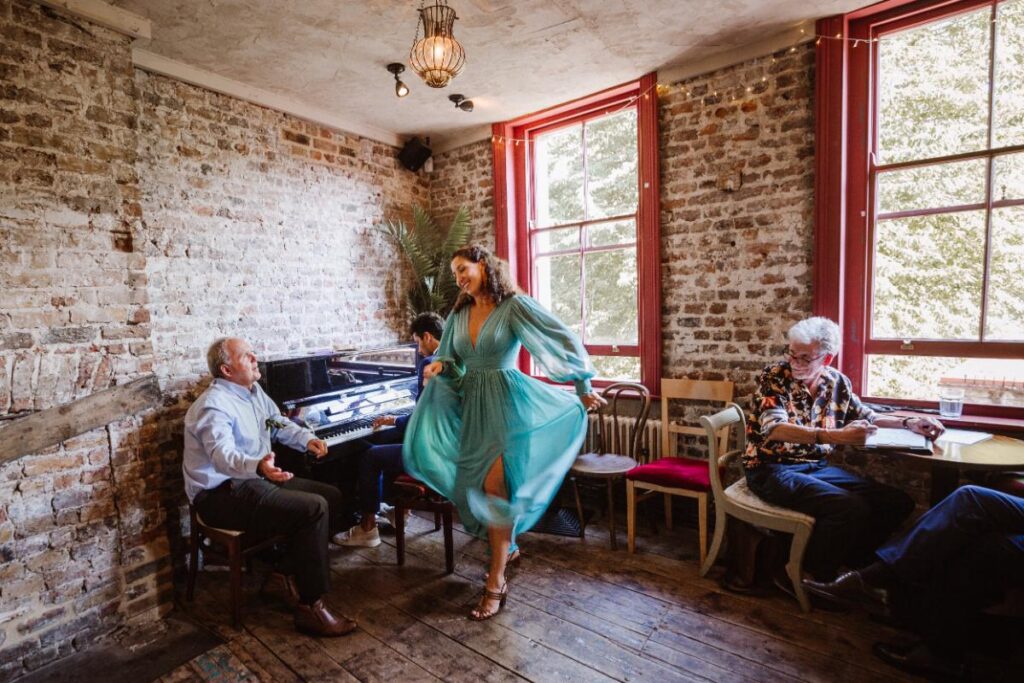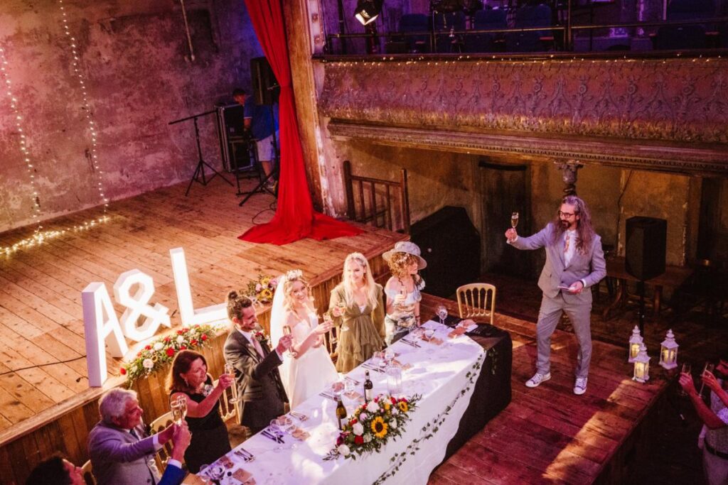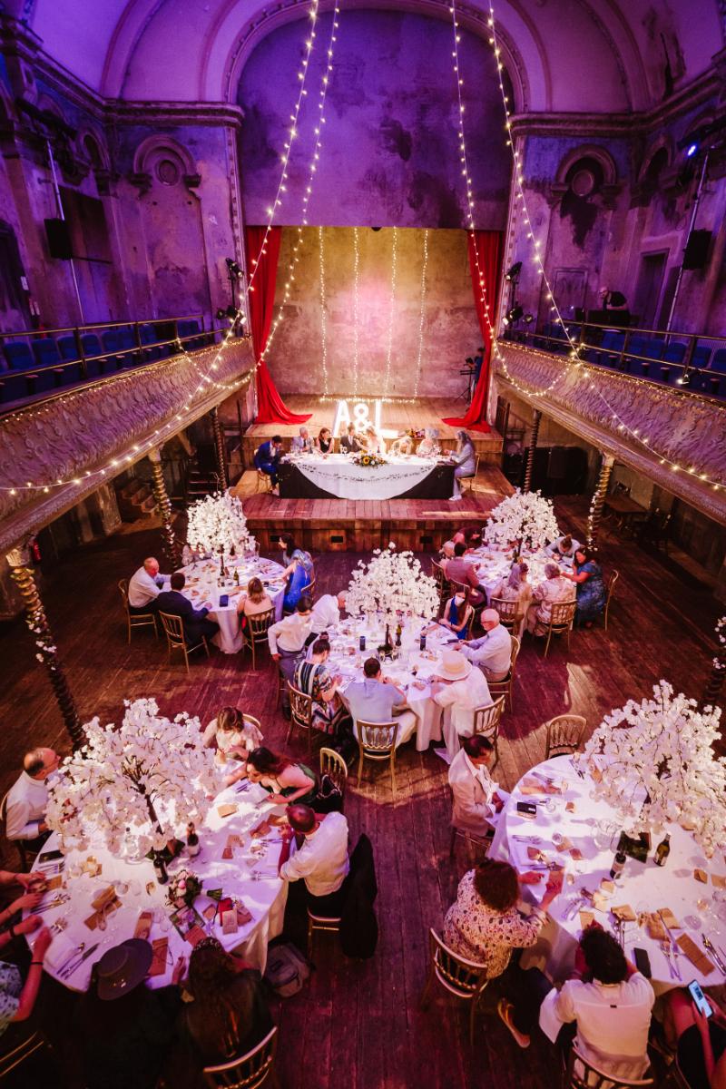 “The history of what is now Wilton’s Music Hall, dates back to the 1600s and has been a working music hall since the 1800s. It is a beautiful venue with deep character, charm and history. It was an important place to both of us, with many happy memories. It seemed like the perfect choice to have a fun and interactive celebration, which is exactly what we planned.”