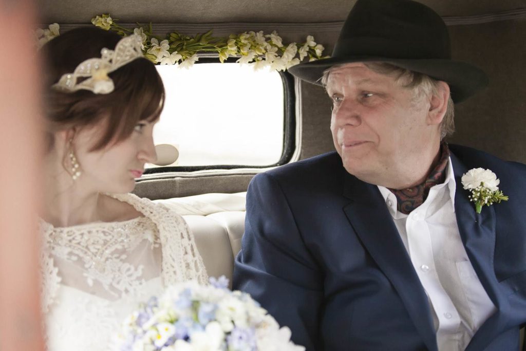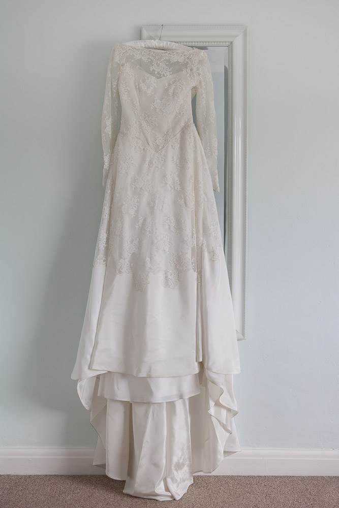 I really wanted a 1940’s dress but searched everywhere and couldn’t find one I loved. Then I went to Luxe Bridal and found the perfect 1950’s tea dress. It was perfect for dancing around in and was a bit of fun. I still had my heart set on a full length dress for the ceremony though and I found the perfect one on eBay. It was being sold by a relative of the person who had owned it – it had been shipped from America and had been kept in a trunk in the attic since it was worn on their wedding day. As soon as it arrived you could feel the history and love in it and I knew it was perfect. My crown tiara came with my wedding dress, it was handmade to match the beading of the dress so it was fate that they should all be worn together. I even wore the old garter that arrived with a dress…something old and blue in one go.