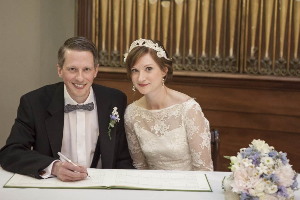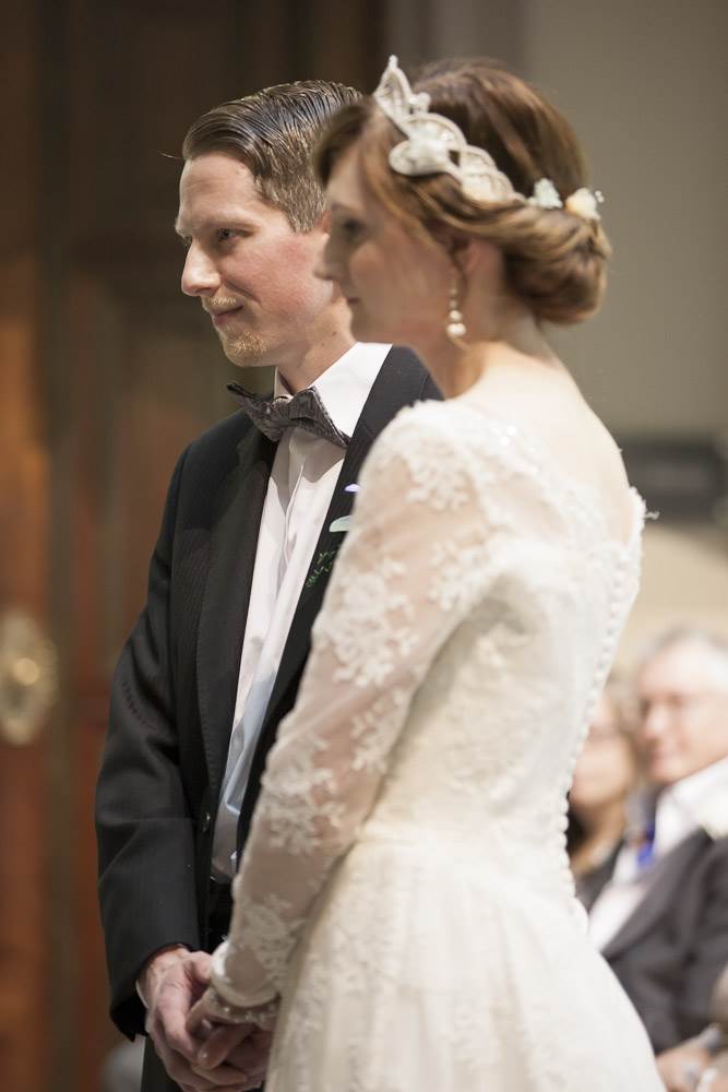 We really wanted to go for a 1940′s theme wedding, as I love all things vintage and the 40′s is my favourite decade. We found it very difficult to find clothing from the period so had to compromise a bit by buying items from the 1950′s and having them altered. I did manage to have my 1940′s champagne flutes for the toast though which I was super happy about. I purchased my jewellery from a vintage flea market that takes place in my town of Filton and a friend lent me a vintage bracelet to wear as something borrowed