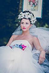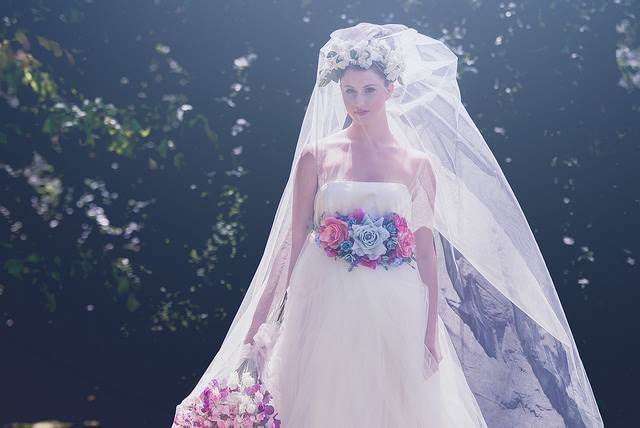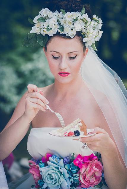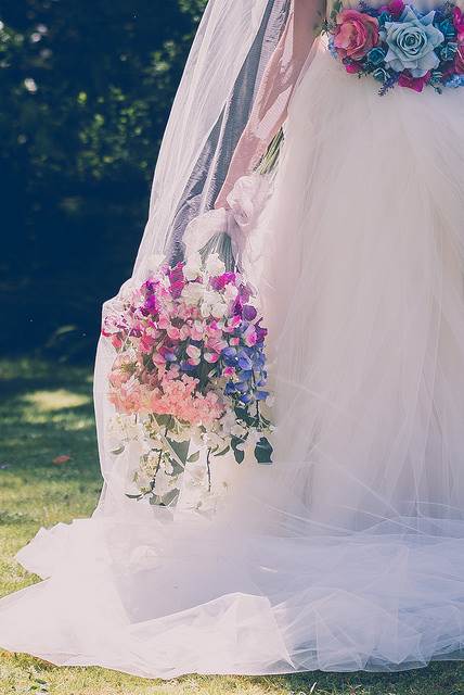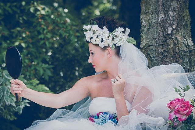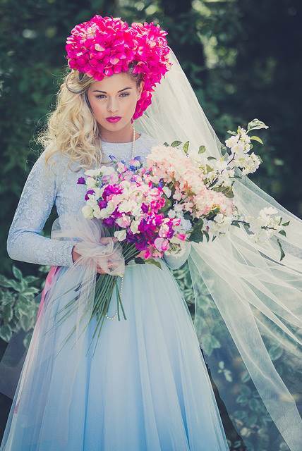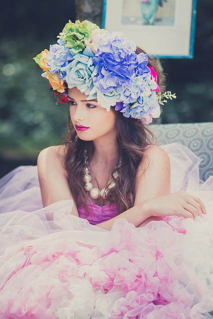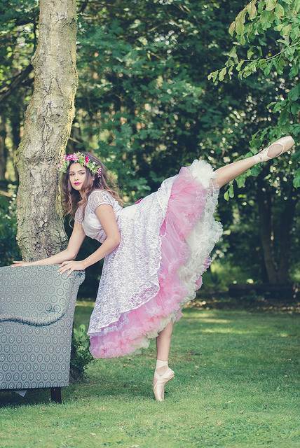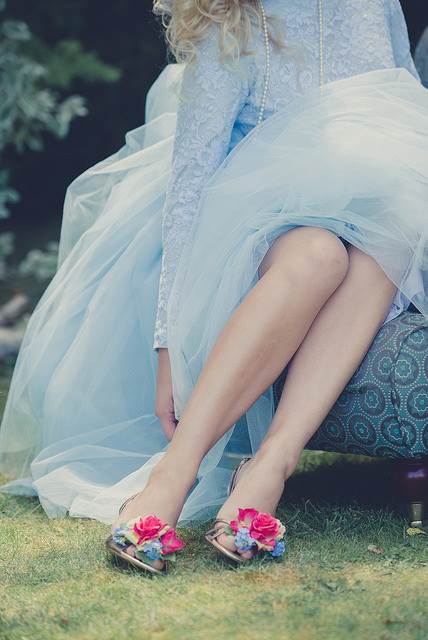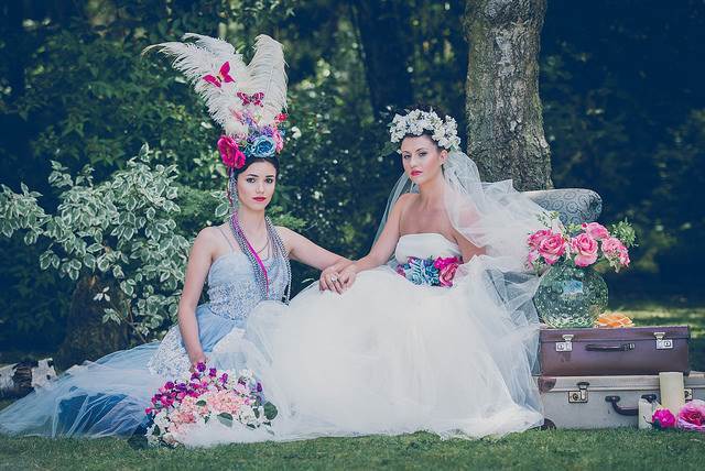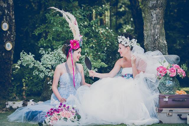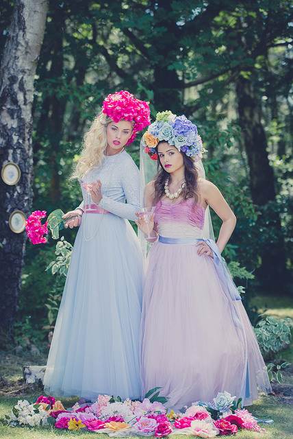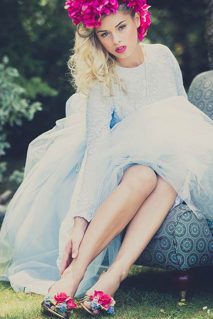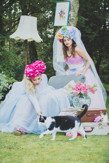 Now this is a truly amazing shoot which got me so excited after the second that I saw it. It has colour, it has flowers (boy, does it have flowers), it has vintage, it has whippets, it has ballet and it also has the most glorious frocks. What is not to love about this shoot. In fact if I had my wedding all over again, I would want this. I mean, vintage pictures hanging from trees…wow!