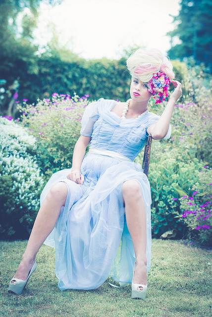 “Whilst on a tea break I looked across the lawn with all the flower heads scattered about the grass and the idea of a lawn/garden tea party came to my mind. I rang the photographer and said, I know what the next shoot will be!!!”