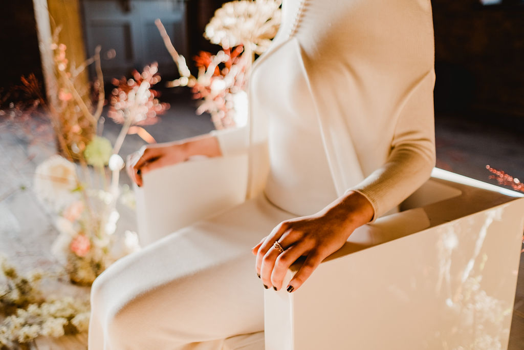 If you’re looking to carry the minimal look throughout your whole wedding day then cut back on all the unnecessary ‘stuff’ use minimal florals, dried is a great alternative, think outside the box and use your surroundings to create ambience and vibe. Also having a minimal wedding generally means you create a much more eco-friendly wedding along the way… and we’re all about being more sustainable! Minimal wedding styling and outfits are chic, sophisticated and dramatic, in their own special way.