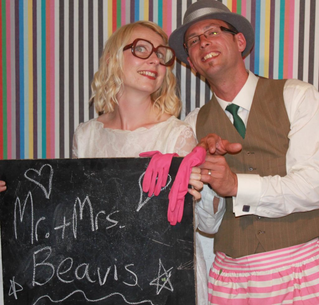 As vintage experts Adams and Kates outfits were not a disappointment.  Kate bought her vintage lace dress from eBay, took it up to a calf length and wore it with bright red Miss L Fire shoes with crystals on.  Her vintage brooch bouquet was handmade by my Adams mother and her vintage inspired headpiece was made locally.  Adam wore a vintage three piece suit and silk 1950’s tie.