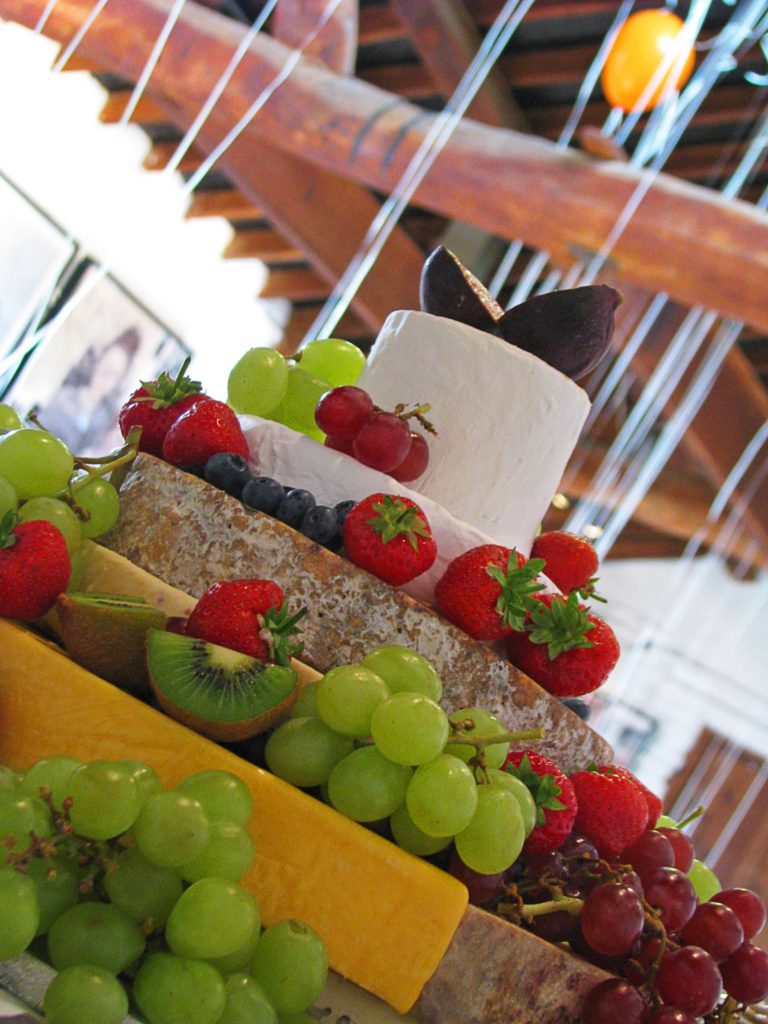 As evening came, Kate and Adam cut a cake made from cheese made by Kates mum who used to own a cheese shop, and then rocked out all night to their favourite indie and rock tunes and ate a late supper of fish and chips catered by a fish and chip van.