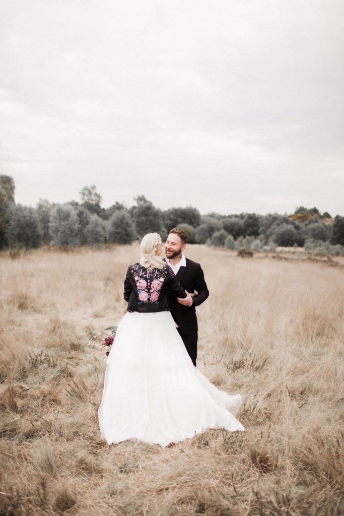 A painted leather jacket seems to be here to stay – they have definitely had a “moment” in 2017 and I am sure they will carry on. I personally have one that I wear daily, and it gets commented on all the time. They look awesome with a wedding dress which by the end of this post, I am sure you will agree! So when I saw this wedding styled shoot I couldn’t wait to share it with you all….read on though as this shoot is not just about the leather jacket!