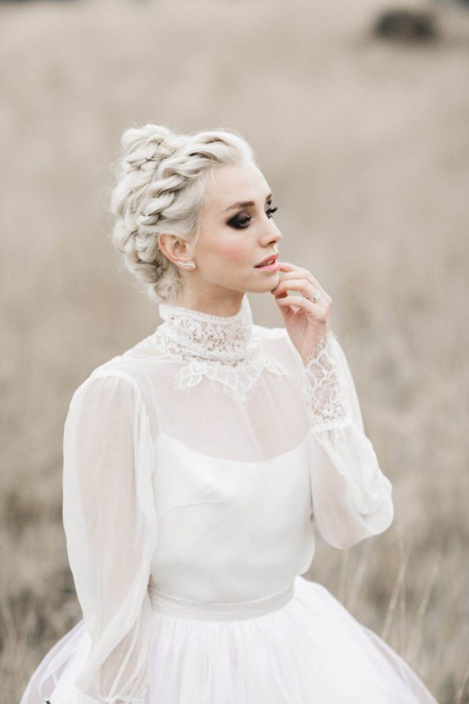 For the final look we transformed the voluminous hair into 4 twist knots with a side twist for the full up style that gave a super modern take on this exquisite and timeless collared dress.