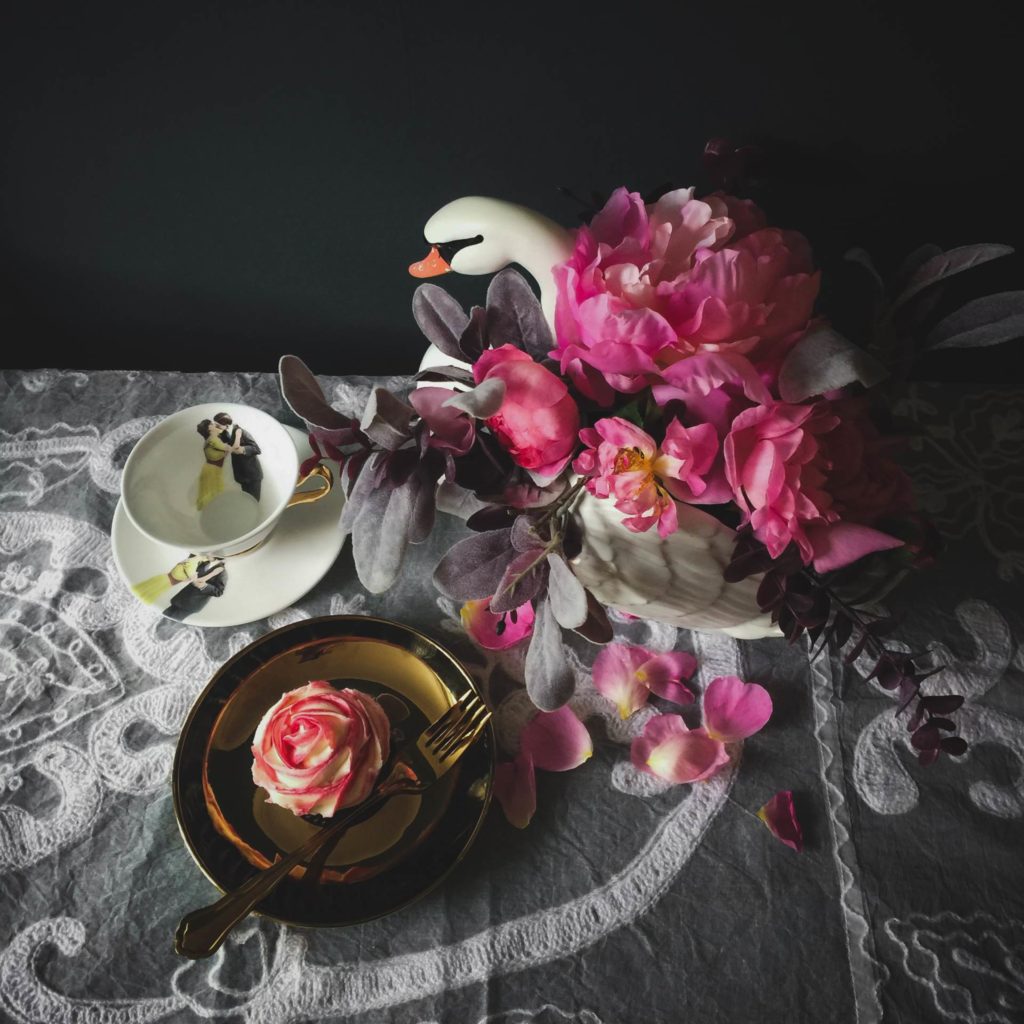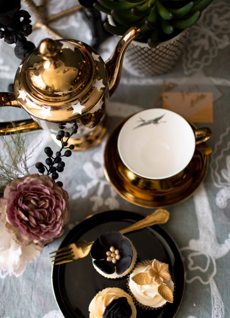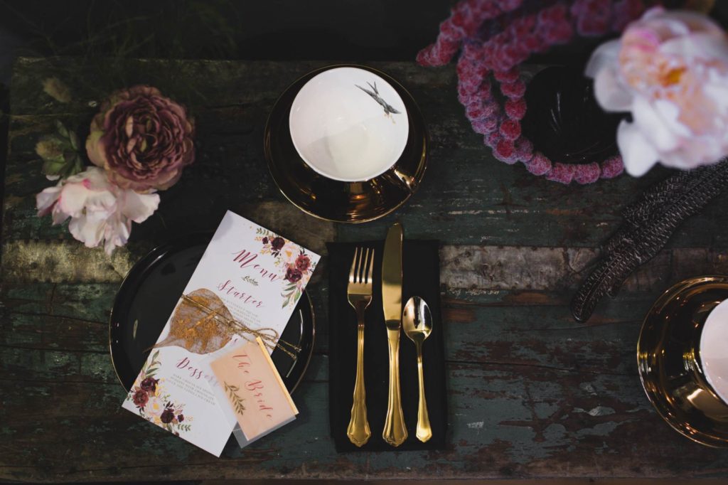The inspiration for the look and feel was a “seductively dark editorial featuring a painted leather jacket, handmade lace boots and fabulously quirky, luxe meets industrial dark tableware.”