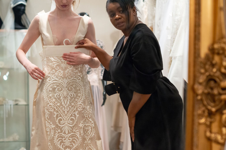 “My style is for a modern bride who loves vintage as my designs have an influence from 1930s fashion. We use a lot of embroidered tulles silks and satins. All our dresses and accessories are made in house in our West London bridal studio.”