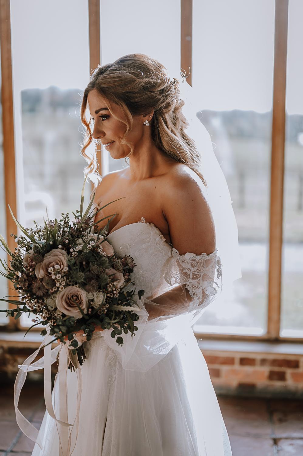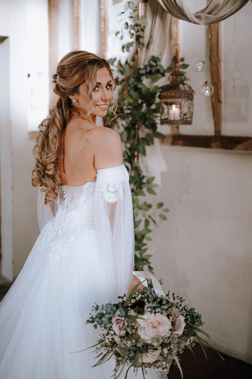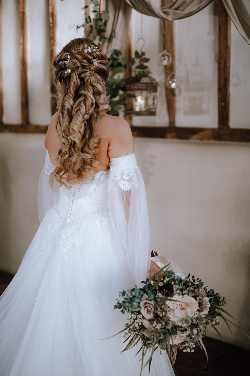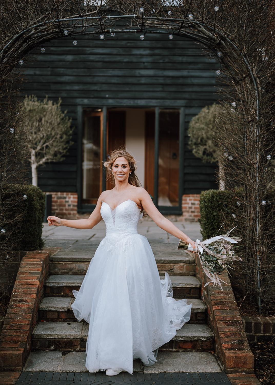 “Key is to try everything. 90% of brides think they know what they want but almost always walk away with the complete opposite in style. Visit a boutique with lots of choice but don’t be tempted to go to lots as you get over faced easily too! I would recommend trying at least 8 dresses to get a clear vision of what looks good. Alex’s dress was made bespoke by bridal designer Kay Heeley as so many brides love certain elements from dresses. By choosing bespoke brides can have literally all their favourite look rolled into one, and have so much fun coming to fittings and physically seeing their dream turn into reality.”