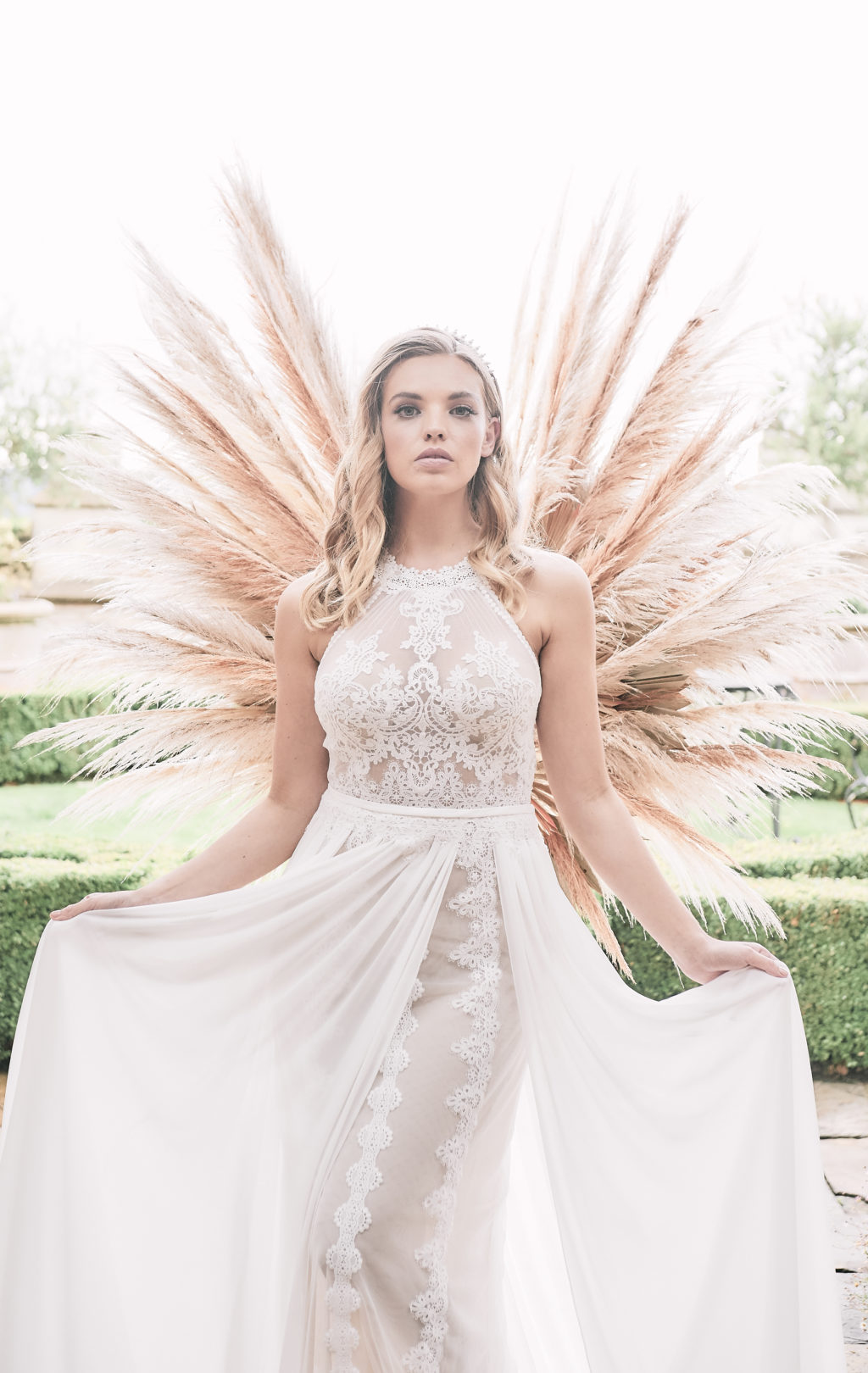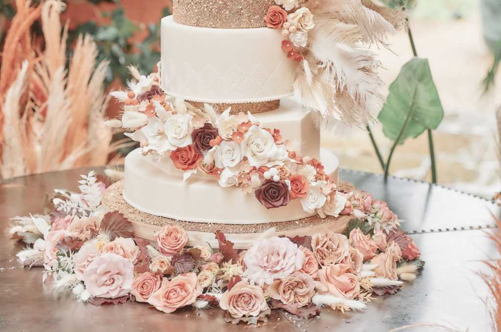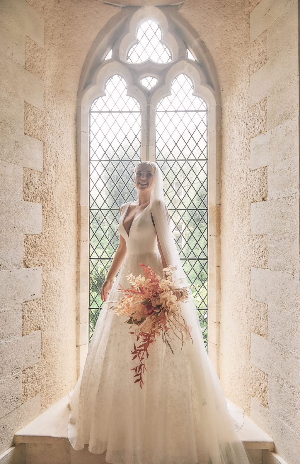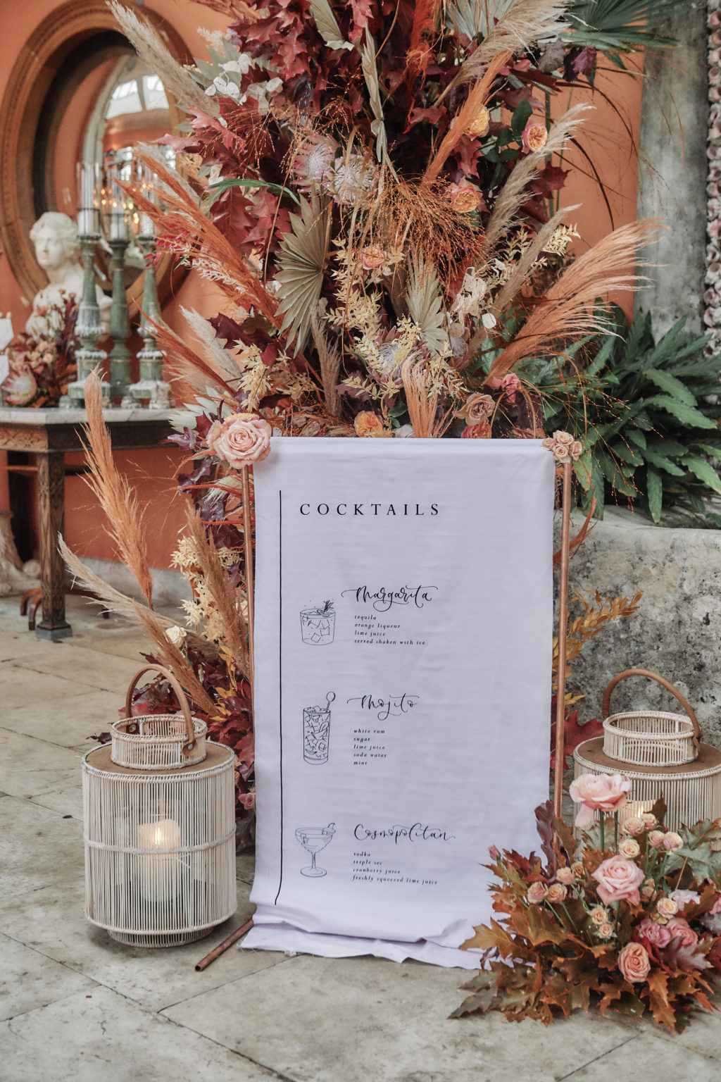 “Wanting to create a sustainable look we used a lot of dried flowers mixed with fresh, in the shades inspired by the venue which gave a beautiful whimsical, romantic yet modern look to the shoot. There is a real playful element to the designs with the colour palette and different textures but a sense of luxury too with the abundance of the designs and by adding in classic flowers such as roses, which also symbolise romance and love.”