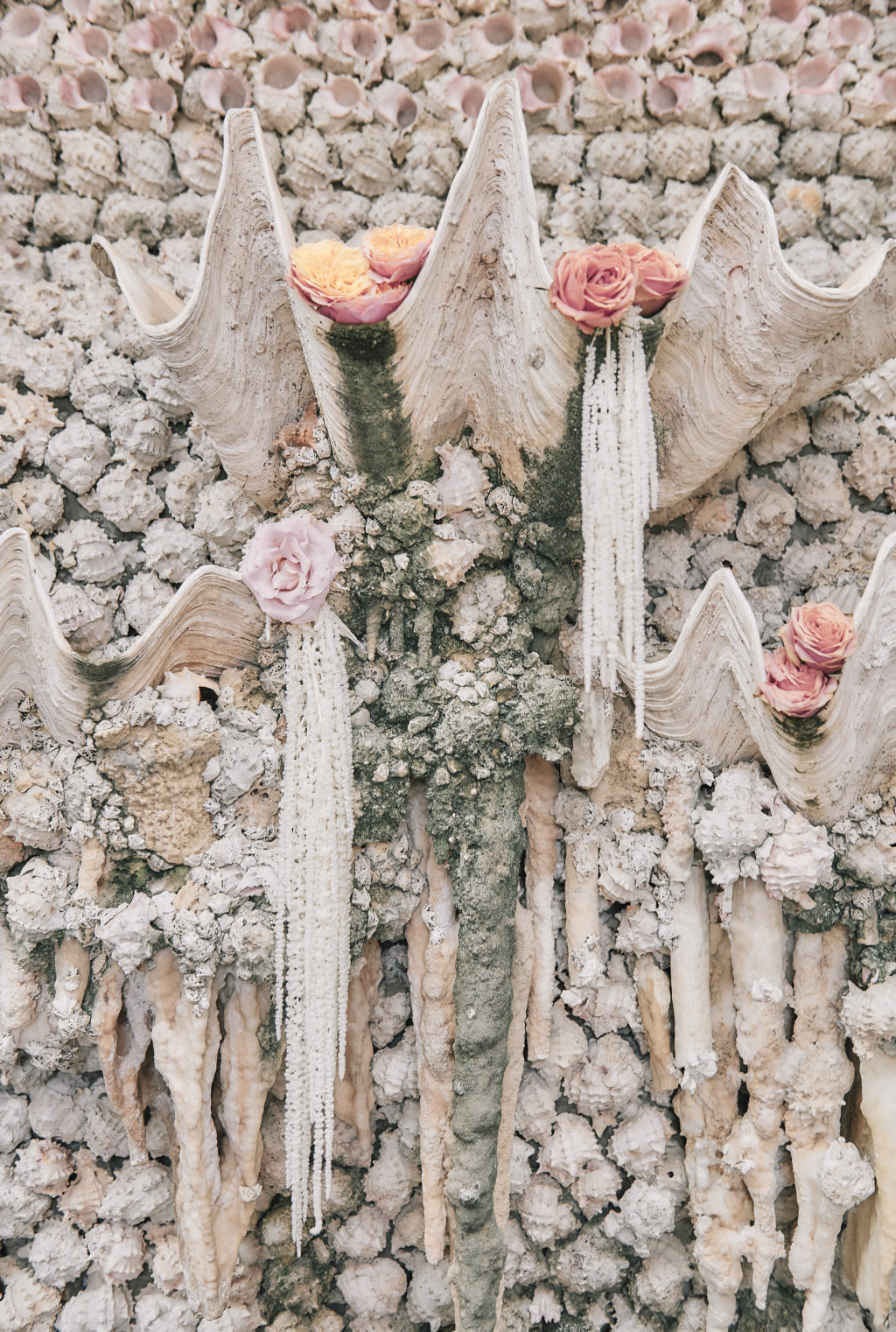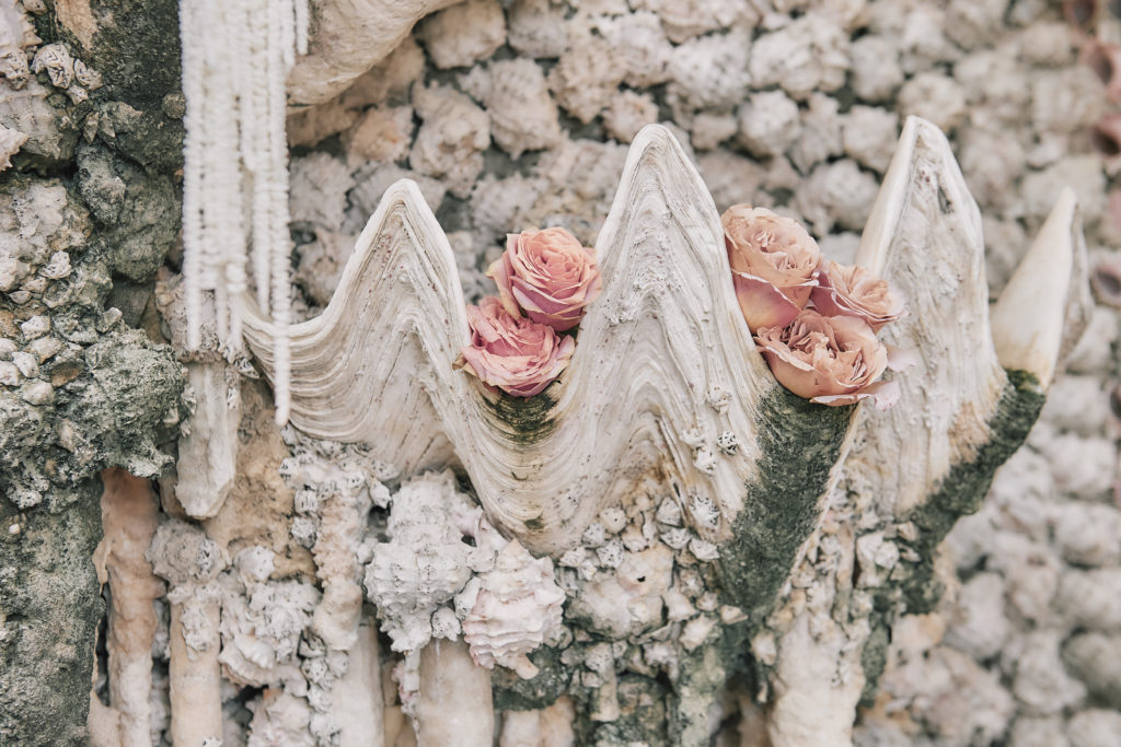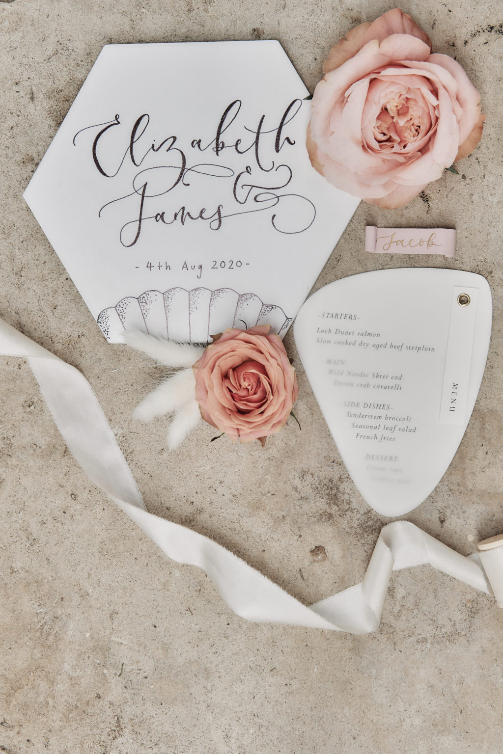 “When creating the design, we decided to use the details on the beautiful water feature in the Orangery to inspire the theme. This consists of hundreds of shells and pearls and you’ll see these little touches running throughout the shoot on the stationery, jewellery and smaller personal touches.”
