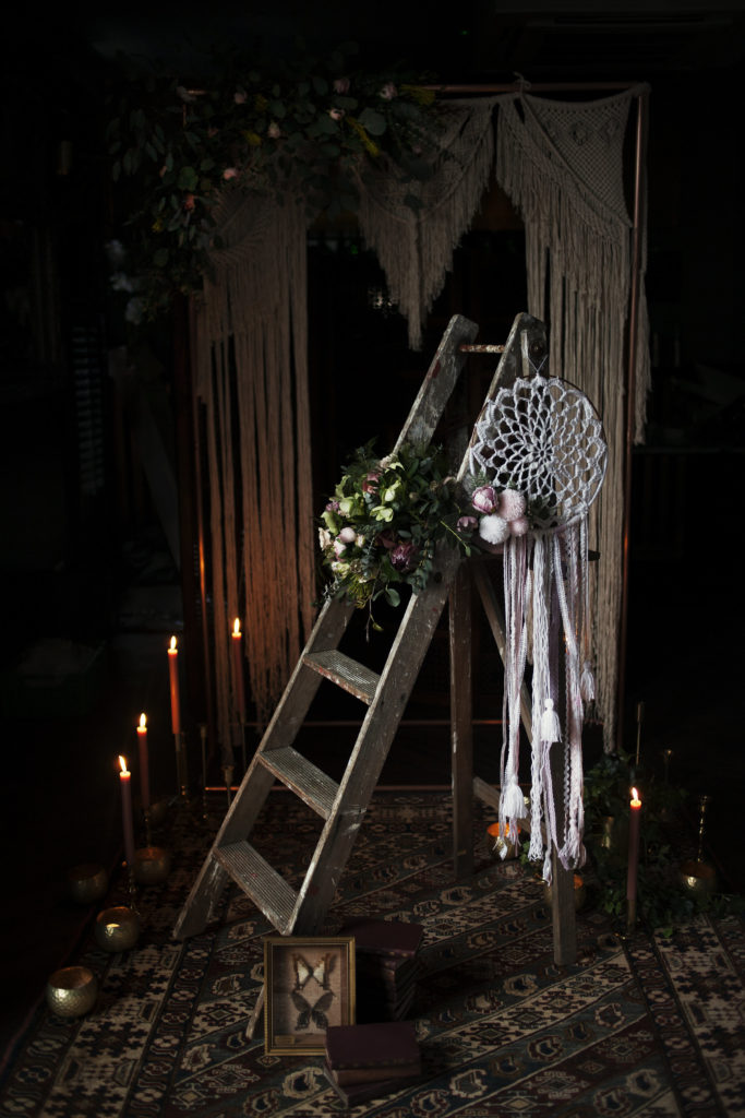 perfect hanging place for a gorgeous macrame backdrop, with vintage Persian rugs creating a mock aisle; adding to the boho feel of the shoot.”