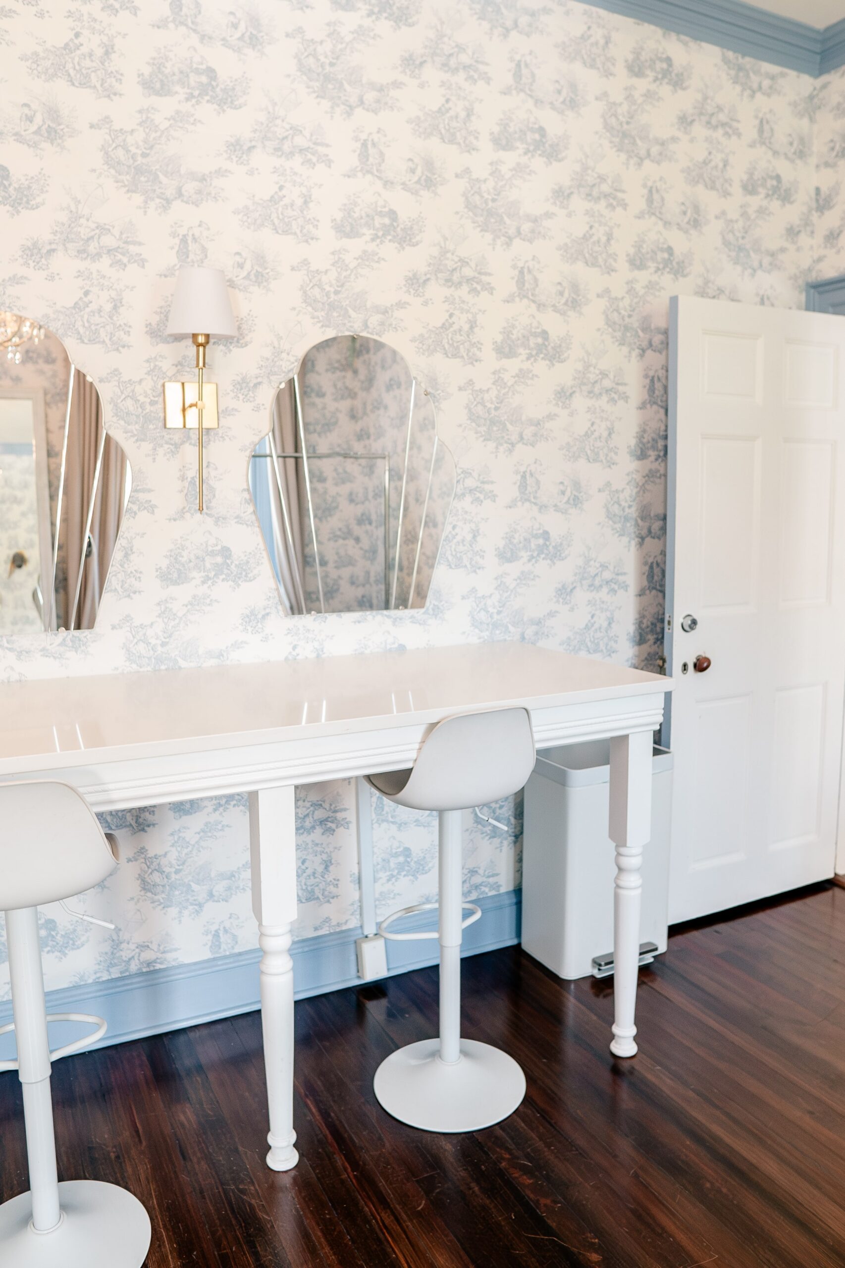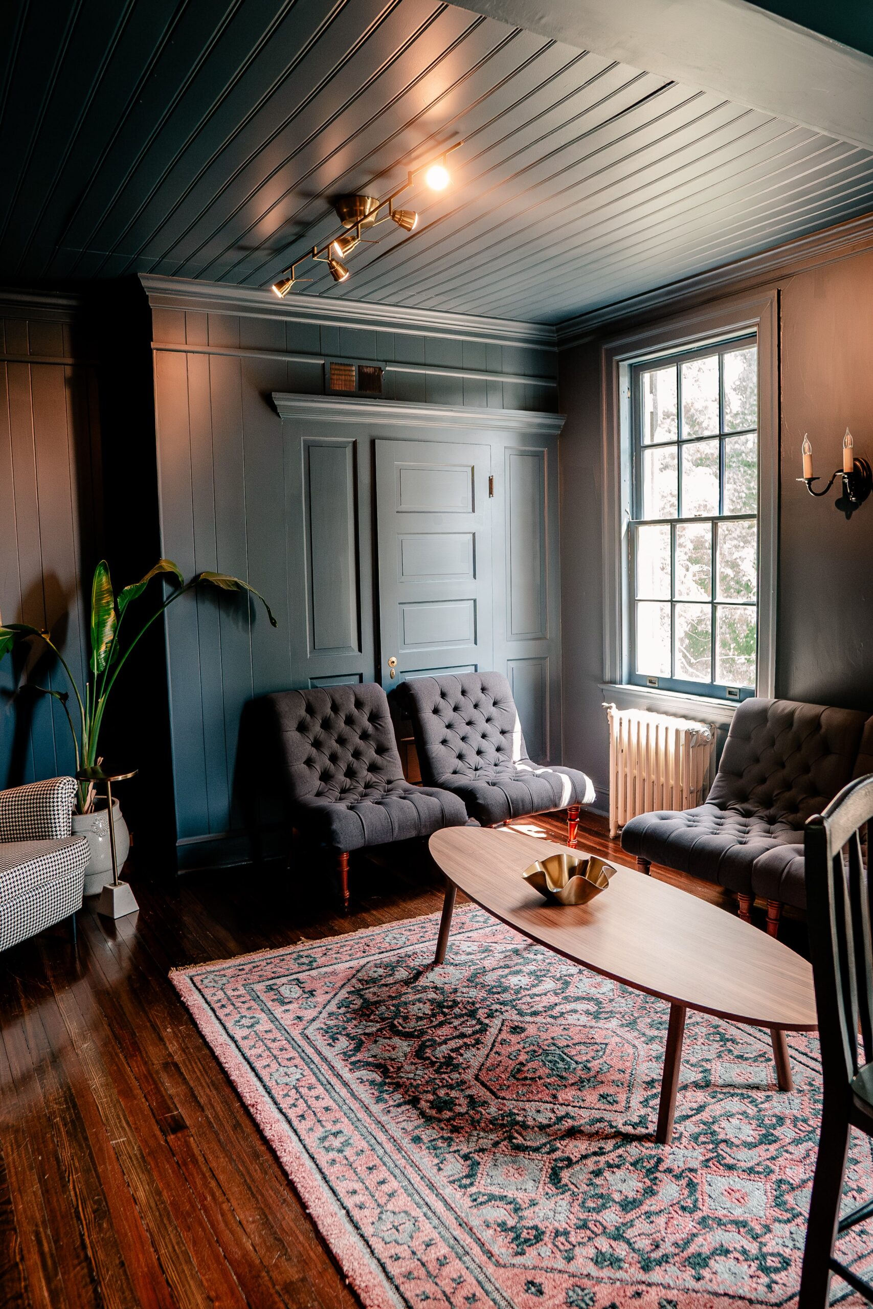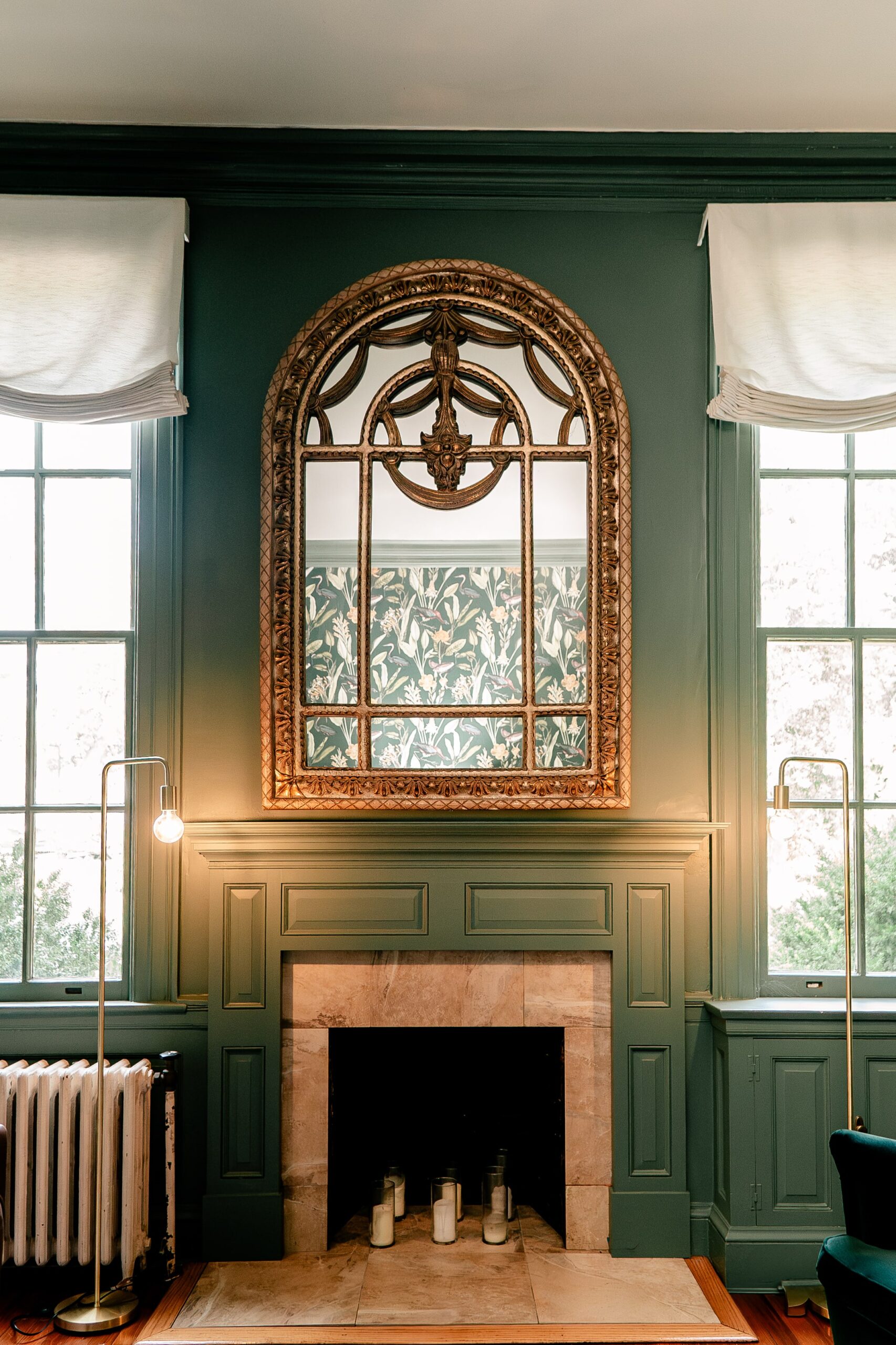 “Rust Manor House is a refined and romantic historic mansion, yet still a blank slate for bringing your wedding vision to life. Every nook and cranny of the space is full of historic charm. The grand staircase is the heart of the house, with its large second-story bay window filling the space with natural light. The simple romance of the foyer is a foil to the moody romance of the estate’s library. This dark room still feels bright with abundant natural light and floral wallpaper, and is the perfect space for private bridal portraits and a quiet moment before the busy wedding day begins. The rest of the house, too, is full of charming details – from the bridal suite with a playful wallpapered bathroom to the luxe groom’s suite with leather upholstery to the various side rooms perfect for intimate dinners or cocktail hour mingling. Its garden property makes for beautiful outdoor ceremonies, romantic portraits, or even al fresco cocktail hours. Finally, there is a large event tent on the property for larger weddings looking to host everyone for dinner and dancing in one place.”