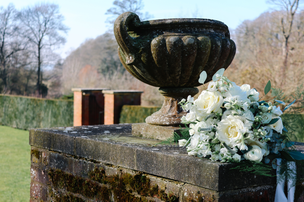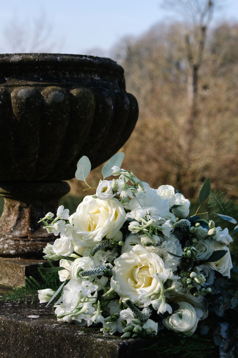 “As a florist, there is nothing more exciting than an opportunity to see my florals come to life on this elegant styled shoot. Designed with the most beautiful flowers chosen for their colour and texture to highlight their beauty for this pretty tablescape. Carefully placed and woven through seamlessly to create this intimate-styled wedding. Classical pure tones continued through to a beautiful hand-tied bridal bouquet including scented roses, ranunculus and delphinium with beauty and interest in abundance. It’s moments like this that always remind me why I absolutely love what I get to create here at Stag Cottage.” Stag Cottage Flowers