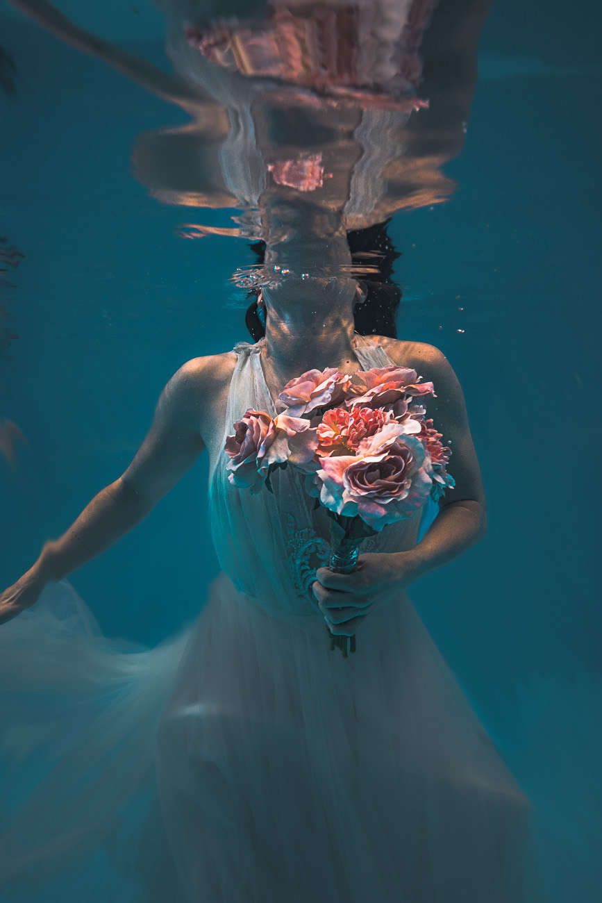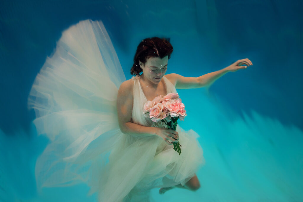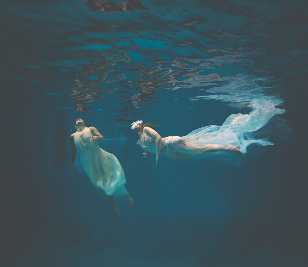 Today we have something unusual for you, but something truly ethereal. Konstsim Kreativ, an events performing synchronised swimming group came to Stockholm-based Mercier Stockholm Bridal with the creative project of designing wedding dresses inspired by their sport.