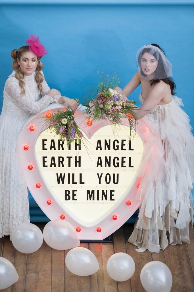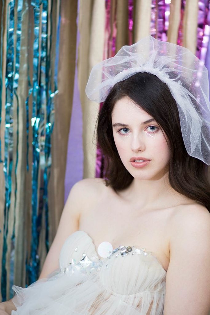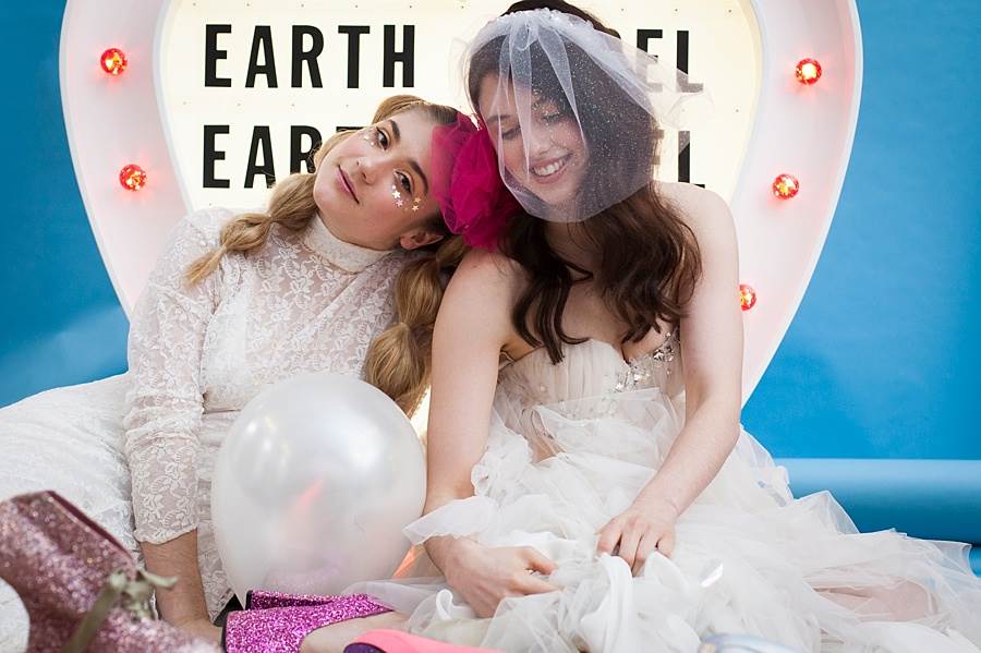 The shoot speaks to young brides mostly, given the sugary colours, the pom pom festival wear, and the clash of styles, from sequin and satin slips for a bohemian glam look, from vintage to festival bridal. I think it’ll appeal to the creative bride who loves a deeper meaning in her fashion choices.