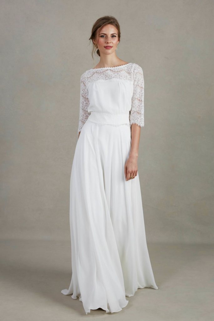 Then of course there was insouciant fashion icon Jane Birkin, who defied tradition and opted for a simple pretty white lace dress with no fuss or frills for her marriage to Serge Gainsbourgh. This relaxed look and undone style is once again hugely popular with modern boho brides and is reflected in some of Sally Lacock’s key styles notably the Carly dress, Georgie dress and also within her brand new bridal separates collection.