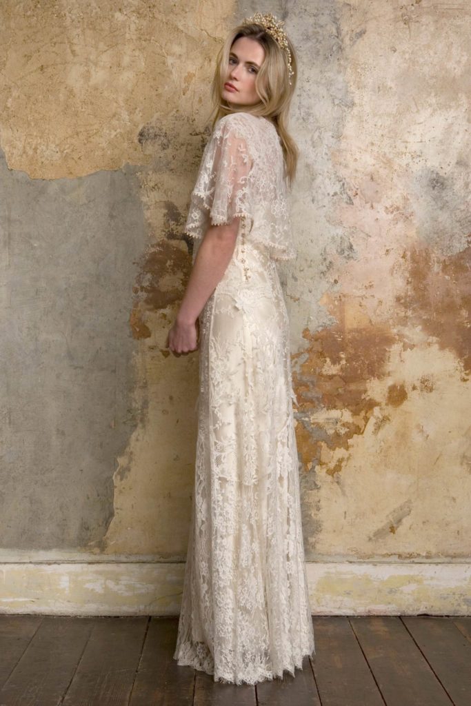 We think you could wear almost anything from Sally’s collection and achieve a 70s vibe depending on how you style it on the day. Wearing hair relaxed and loose and adding a Juliet cap veil or a vintage shawl gives instant 70s boho appeal. If you are not into high necks try wearing a choker with a low neck and channel the look in your own modern vintage way.