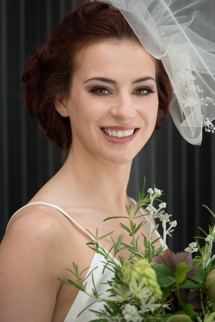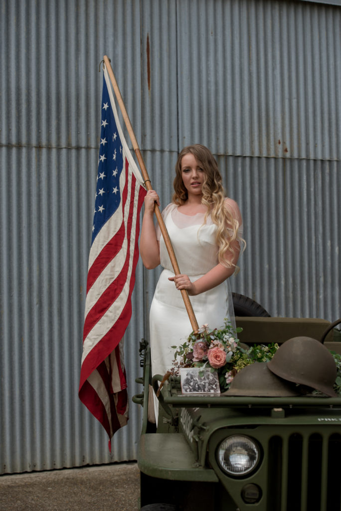 I love how, with this backdrop, I am taken back to the 1940s without a vintage gown in sight. The contemporary dresses work perfectly with the hair pieces but with a few key props, take us back to a nostalgic place.