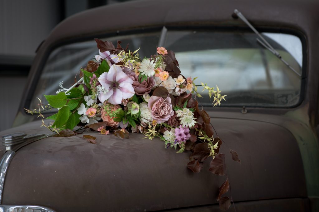 “We just had to decorate those vehicles and we used traditional blooms by Country Garden Flower Company whose flowers and foliage are all grown in their own garden and then arranged into innovative forms and textures to give a modern feel.”
