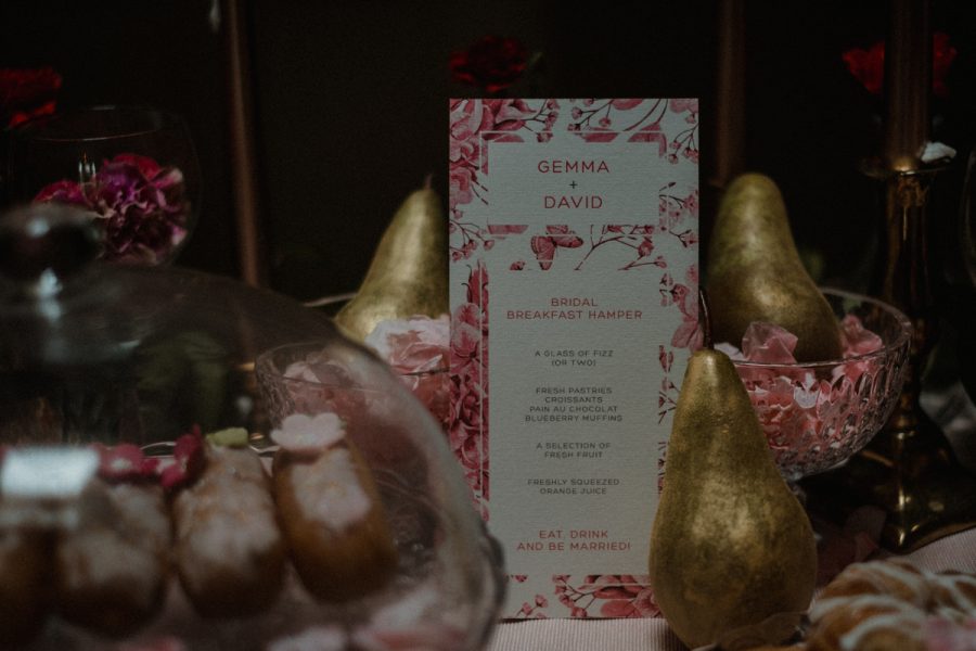 Rather than a wedding table set for a traditional wedding breakfast like we often see in shoots, Redamancy Wedding Design created a wedding brunch table which is the perfect addition to a morning full of wedding preparation. A well set table complete with flowers and fancies is another little way to make your wedding morning into a celebration in and of itself. Eclairs by The Whimsical Cake Company are the perfect, pretty treat to deliver sustenance whilst also helping you get in the mood for a party.”