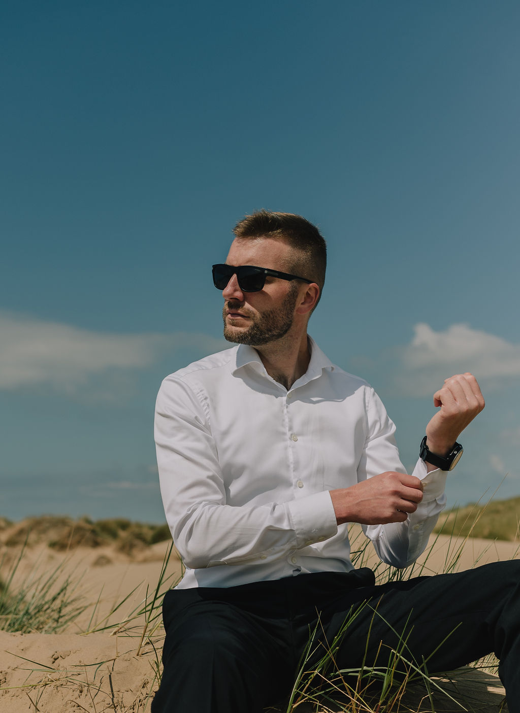 Again this is down to personal choice but choosing beach-friendly attire may make your life easier for photography etc. Select attire that is suitable for a beach setting, we’re not suggesting shorts and a tee or a bikini (unless you want to) but opt for lightweight, breathable fabrics that will keep you comfortable. Consider the wind, sand and sea when choosing your dress, suit, or other outfits. Don’t forget swimwear; trunks and bikini tops for a quick dip afterwards!
