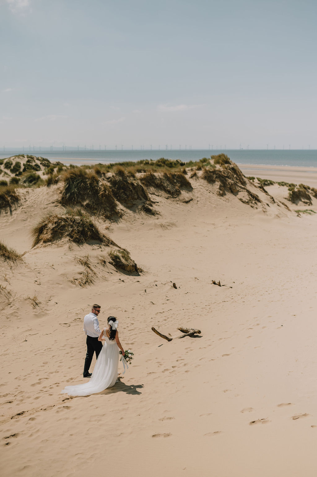 Want to plan the perfect beach wedding for the two of you? It will look different for every couple but there are some things that are essential and lots of things to consider to make it a day to remember. Whether you’re planning to elope just the two of you in a romantic getaway or you’re planning a more formal affair, a beach elopement is an intimate and romantic way to exchange vows. We’ve put together some of our top tips and advice on how to plan one. Plus, alongside it, we have a some beautiful inspiration set at Formby Beach by a creative team of industry professionals including Nicola from Silver Sixpence In Her Shoe and photographer Paulina of PLH Photographs who share with us the inspiration behind the shoot too!
